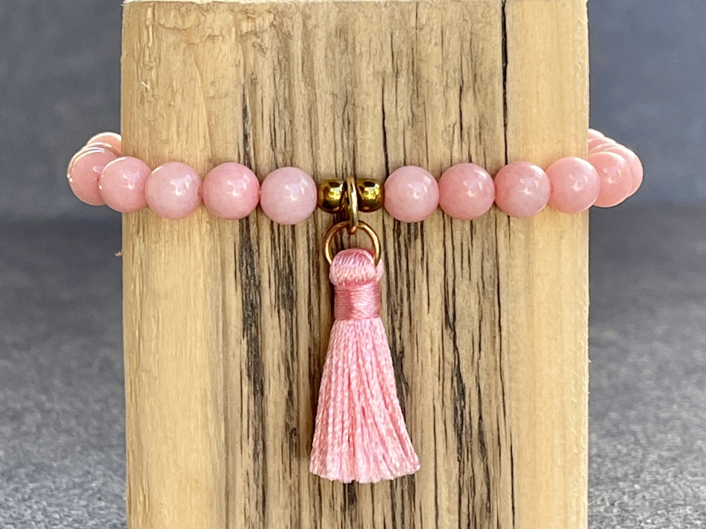 Jadeit růžový náramek se střapcem - kulička 6 mm