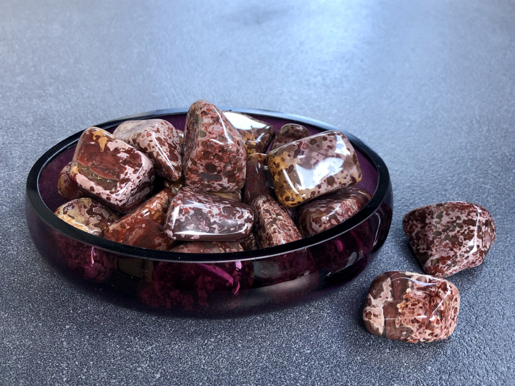Tromlovaný kámen z jaspisu leopard se pyšní krásným zbarvením a hezkým tvarem. Jaspis přináší vnitřní útěchu v dobách, které jsou pro člověka emocionálně a duševně náročné.