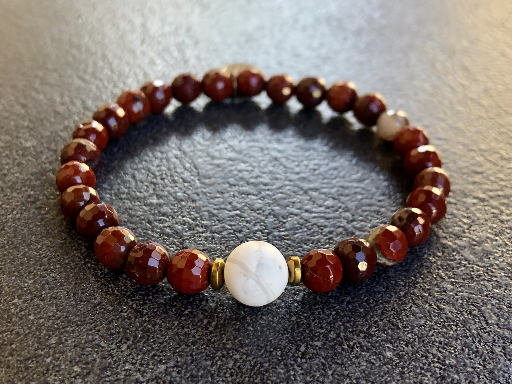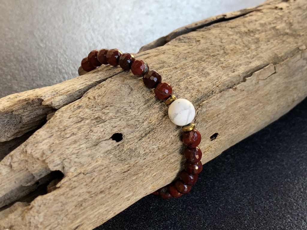 Jaspis brekcie faset, magnezit náramek - kulička 6 mm