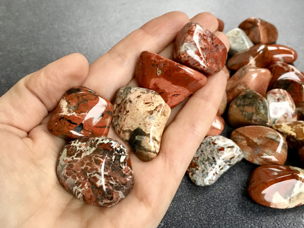Tromlovaný kámen krásného jaspisu brekcie přináší vnitřní útěchu v dobách, které jsou pro člověka emocionálně a duševně náročné.