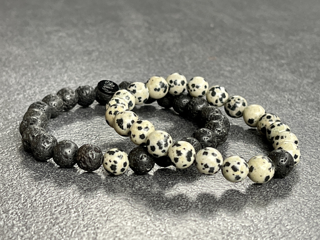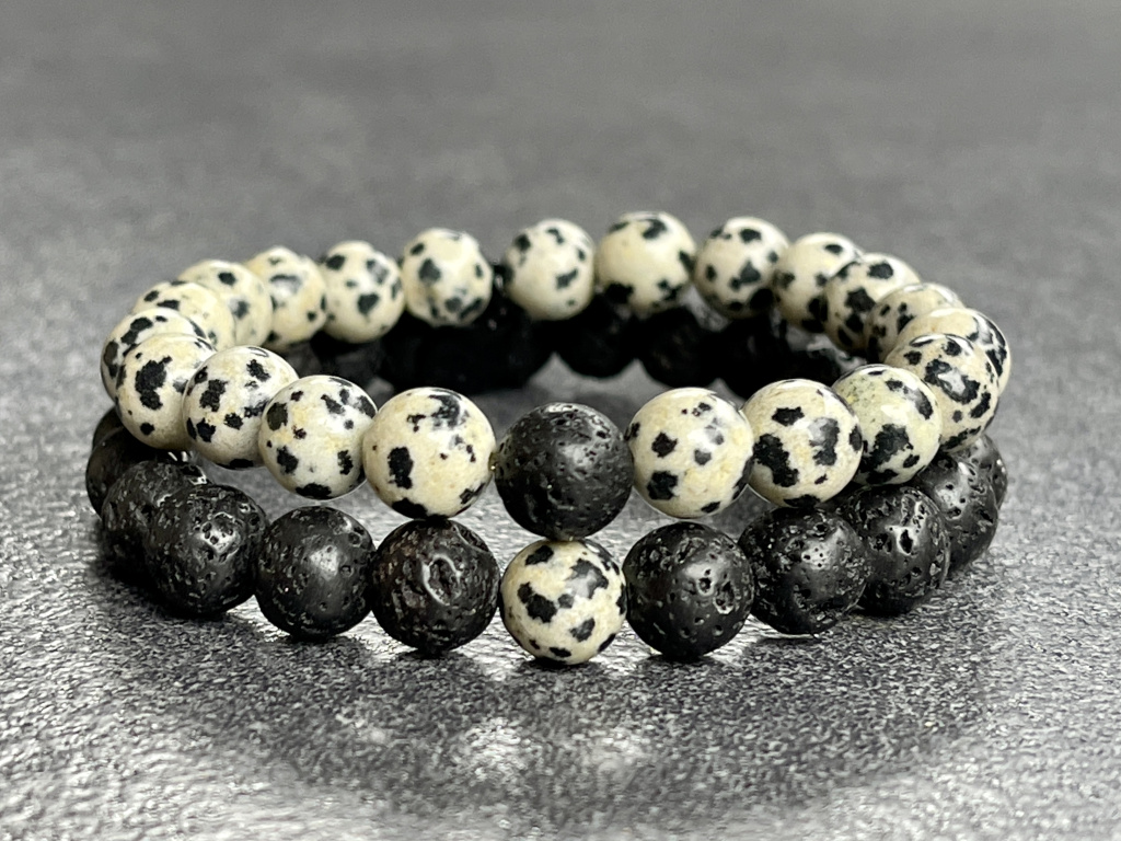 Náramky pro páry - láva, jaspis dalmatin - 8 mm