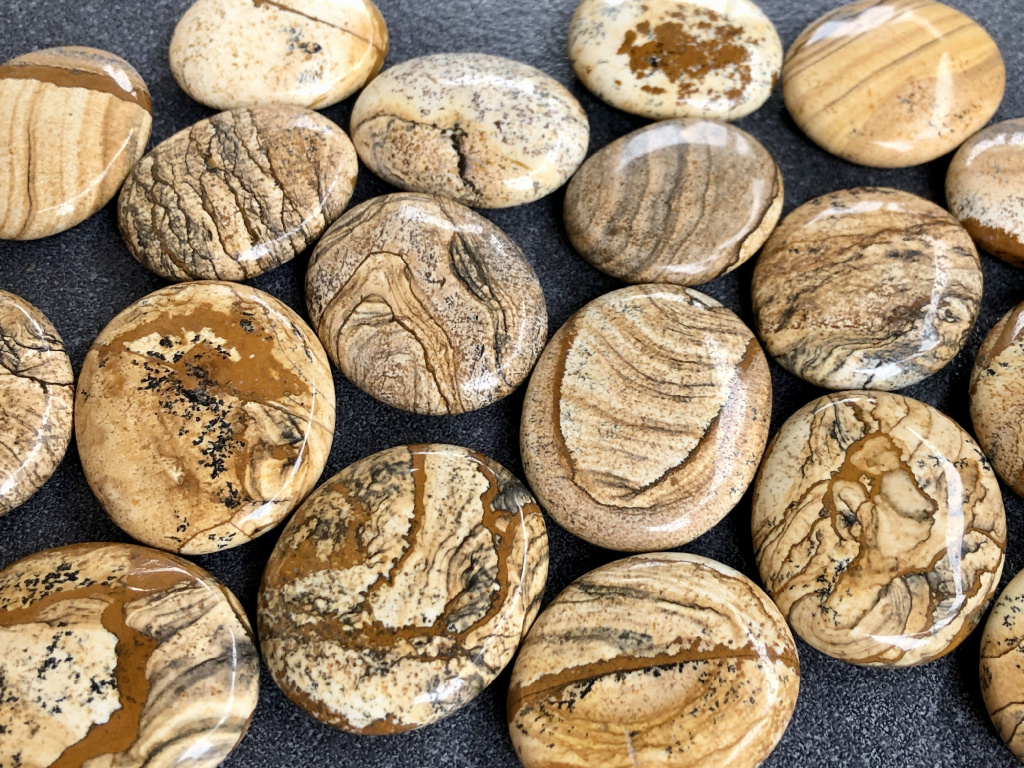 Jaspis obrázkový, často přezdívaný kamenem krajiny, v sobě nese klidnou a zemitou sílu přírody. Jeho nádherné kresby připomínají pouštní duny či hory a pomáhají nám znovu se propojit se Zemí, stabilitou a vnitřním mírem. Tento kámen přináší trpělivost, vytrvalost a pocit jistoty – ideální pro časy, kdy potřebujeme zpomalit a znovu najít svůj směr.