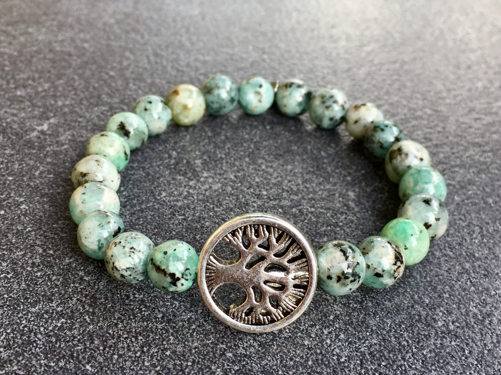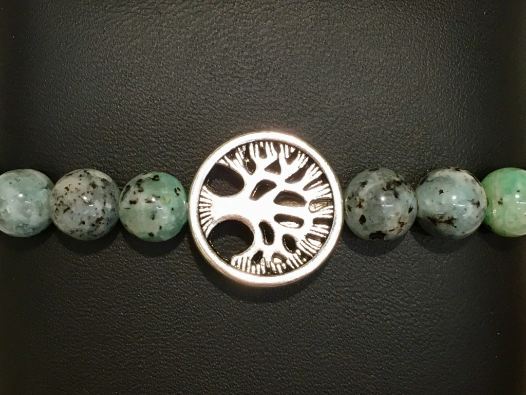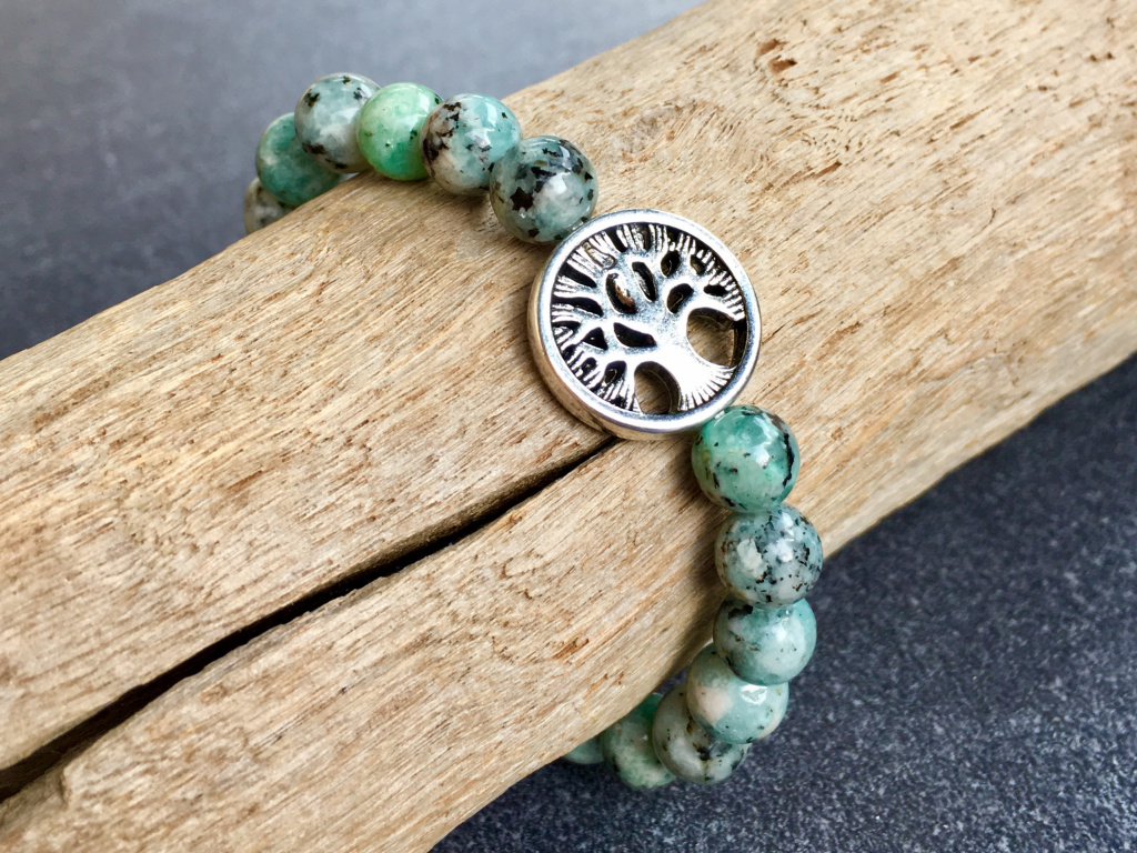 Náramek z krásného jaspisu sezamového se symbolem "strom života" aktivuje odvahu a vytvrvalost. Strom života je symbol dlouhověkosti a síly.