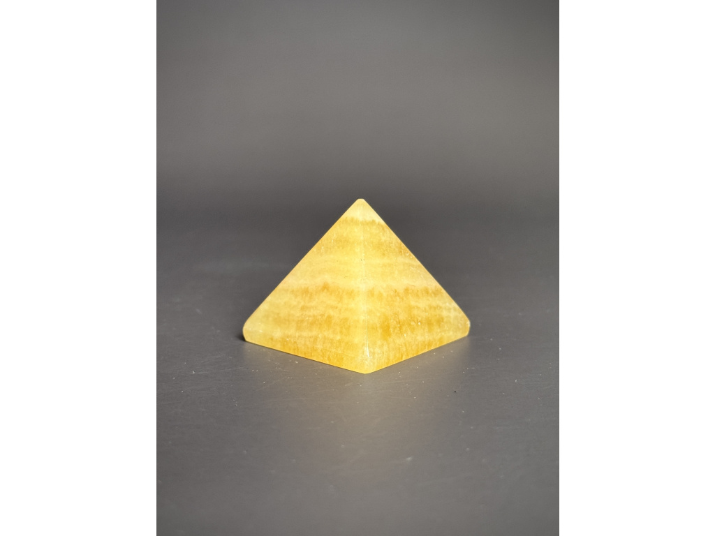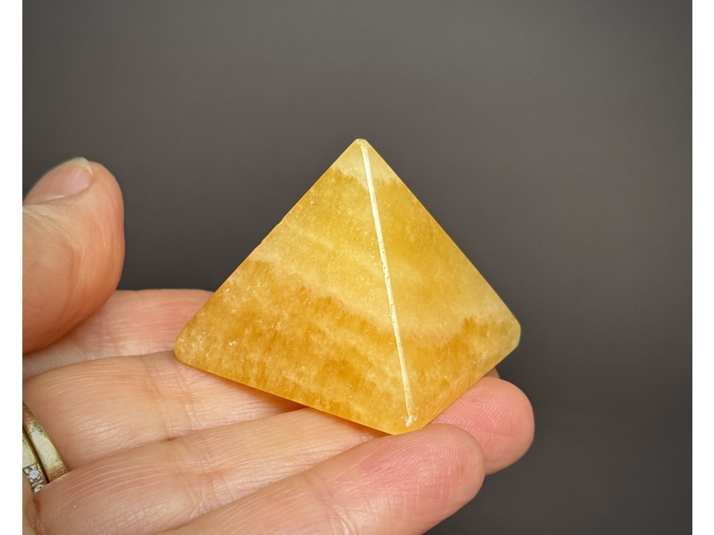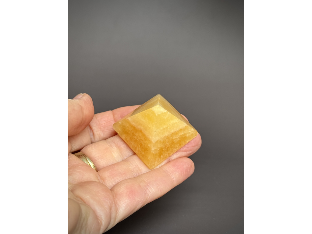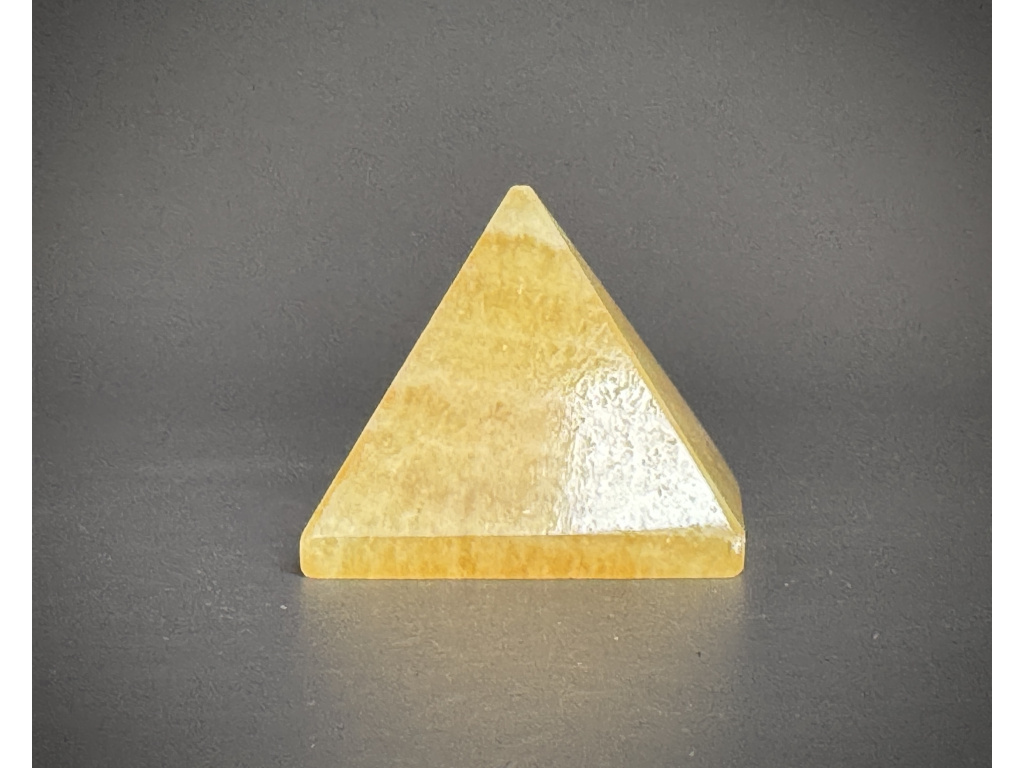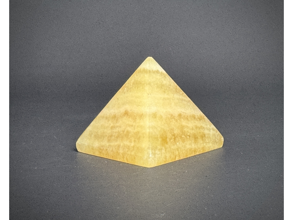 - Přírodní medový kalcit, pečlivě broušený a leštěný do přesné pyramidy.