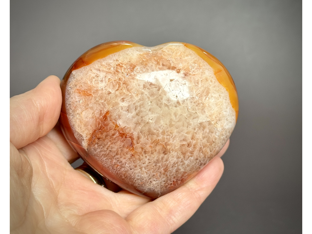 Srdce z karneolu v typickém teplém tónu oranžové barvy, bude Vaším talismanem odvahy, vitality a sexuality.