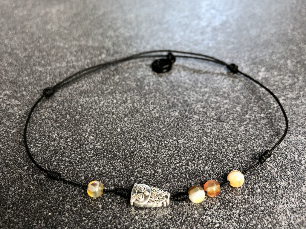 Kotníkový náramek "SOVIČKA" - achát přírodní - kulička 4 mm