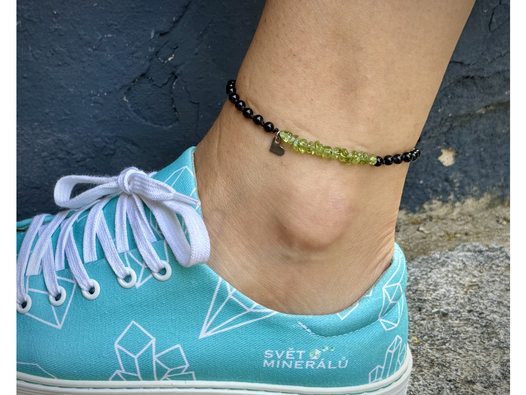 NÁRAMEK NA NOHU Z OLIVÍNU A ACHÁTU ČERNÉHO