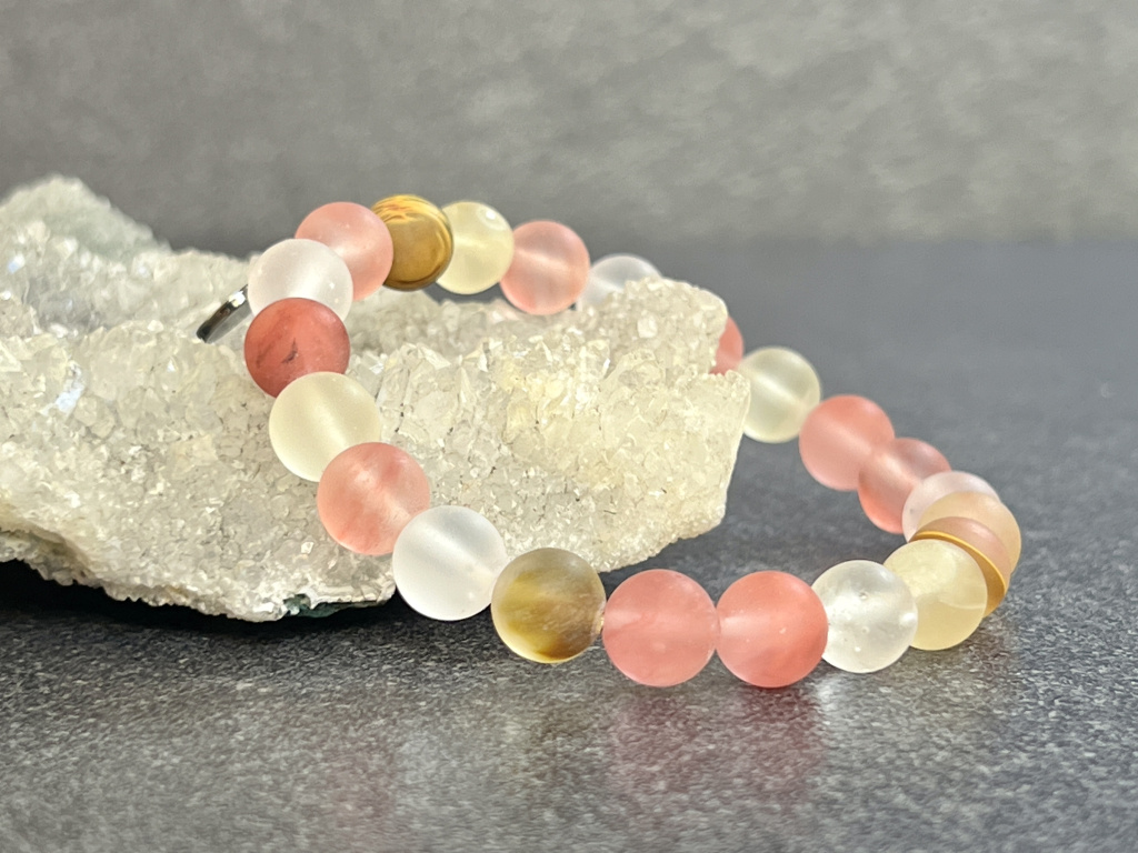 Náramek z krásného sopečného cherry křemene v matném provedení, dokonale a silně pohlcuje a filtruje negativní energie kolem nás
