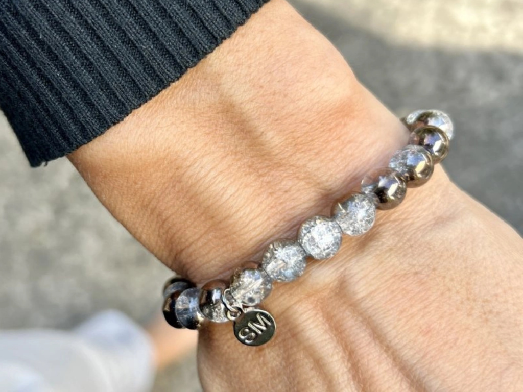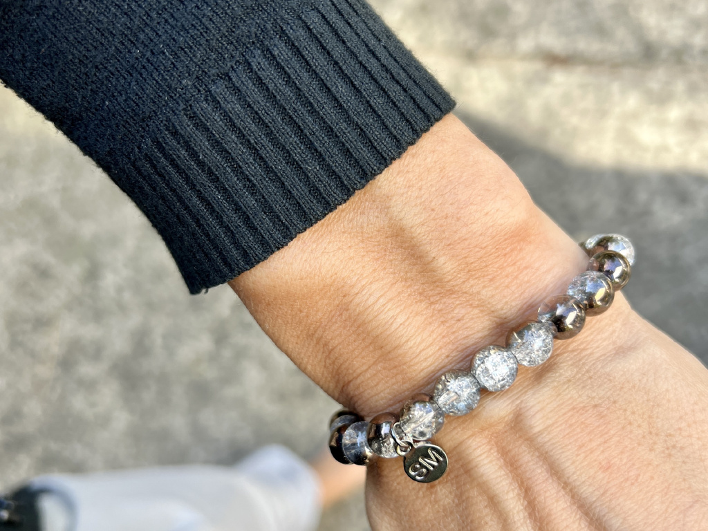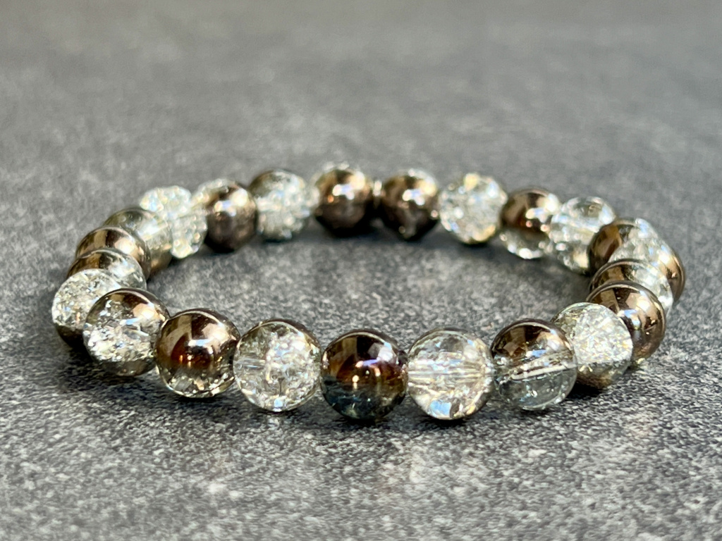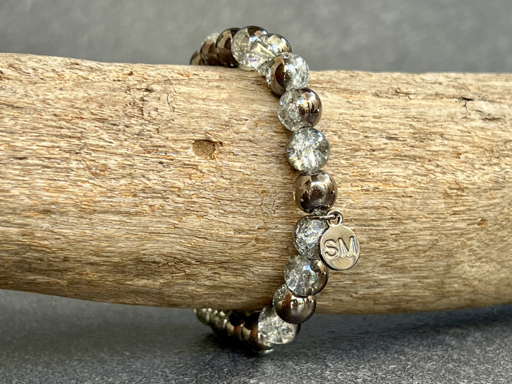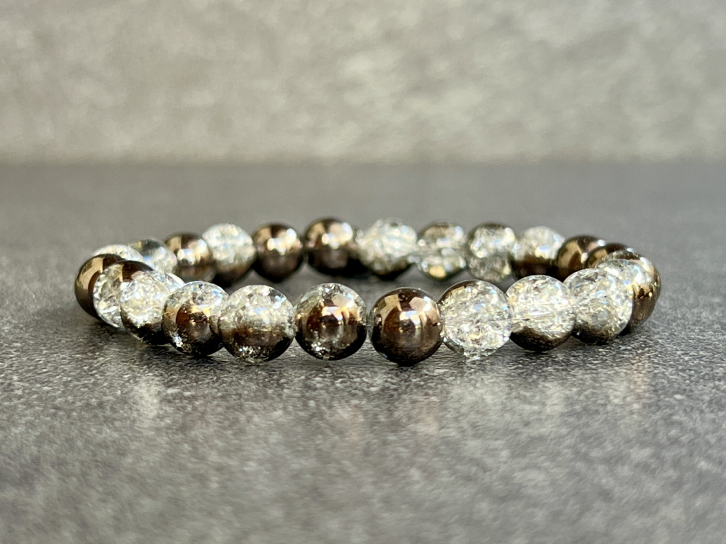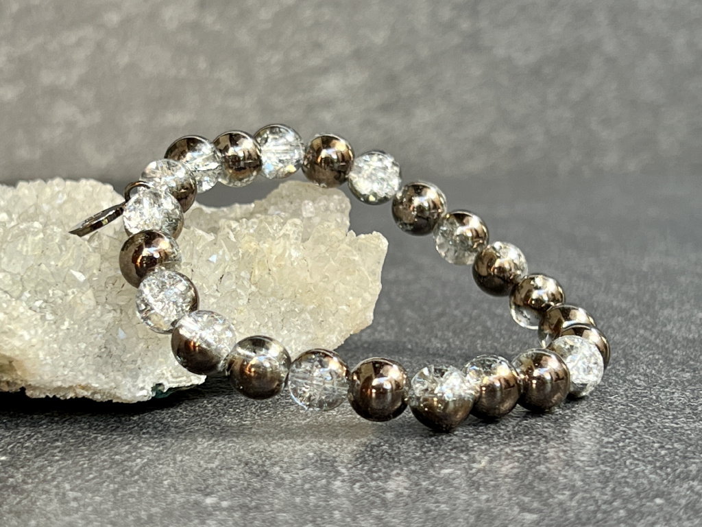 Křišťál praskaný pokovený náramek - kulička 8 mm