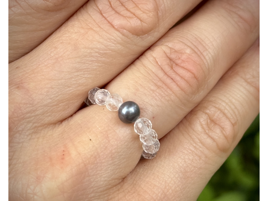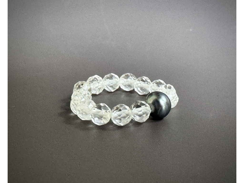 Prsten z fasetovaného křišťálu a černé říční perly je vhodnou volbou pro každodenní nošení i speciální příležitosti. Společně tvoří harmonický celek, který upoutá pozornost a zároveň podpoří vaši vnitřní rovnováhu.