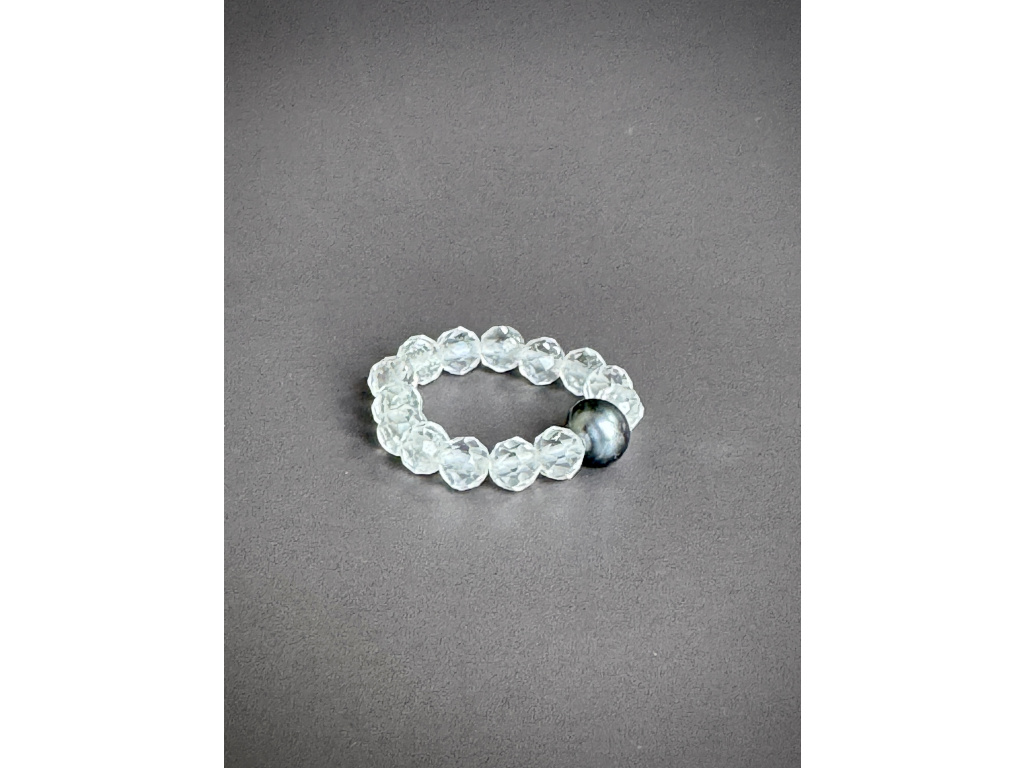 LUXUSNÍ PRSTEN Z FASETOVANÉHO KŘIŠŤÁLU A ČERNÉ ŘÍČNÍ PERLY