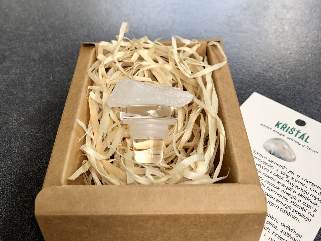 Originální skleněná zátka na láhev s krásným surovým křišťálem se stane ozdobou každého stolu. Zátka se hodí pro všechny druhy lahví, jako jsou vína, oleje, octy a další tekutiny.