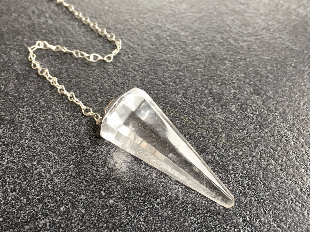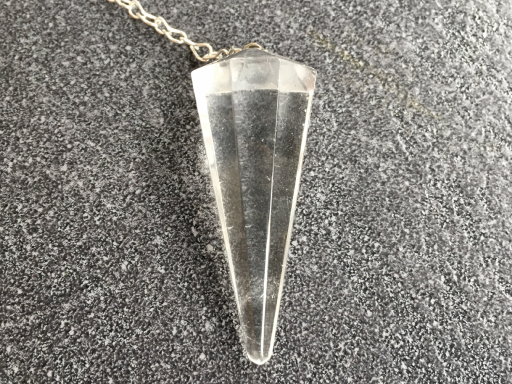 Křišťál ve tvaru kyvadla je velmi silný a ochranný kámen, který se používá v lidových postupech k vystopování blokád, ukrytých energií i nemocí. Křišťál silně bojuje proti negativním vlivům z okolí, harmonizuje a pomáhá se vyrovnat se všemi nemocemi.