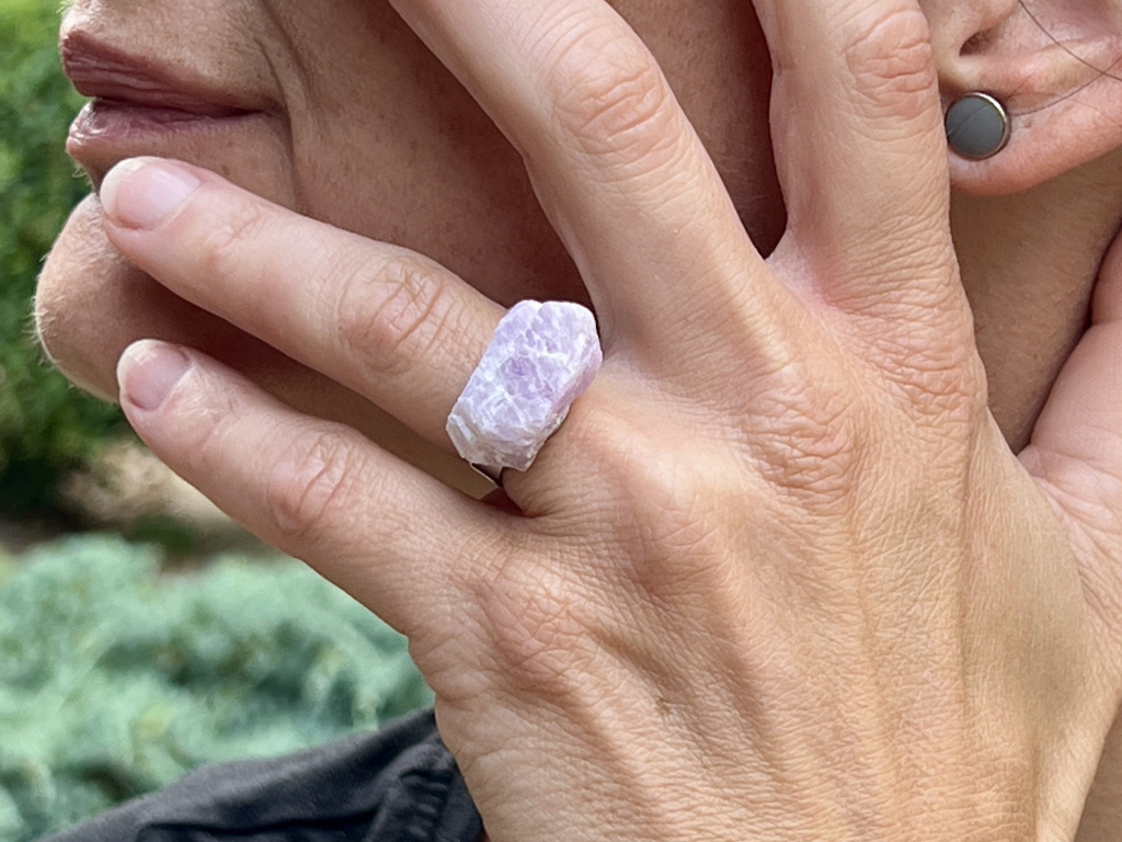 Kunzit, s jeho jemnou fialovou barvou, symbolizuje klid, lásku a emoční uzdravení, což činí tento prsten nejen krásným doplňkem, ale také nositelem hlubokého významu.