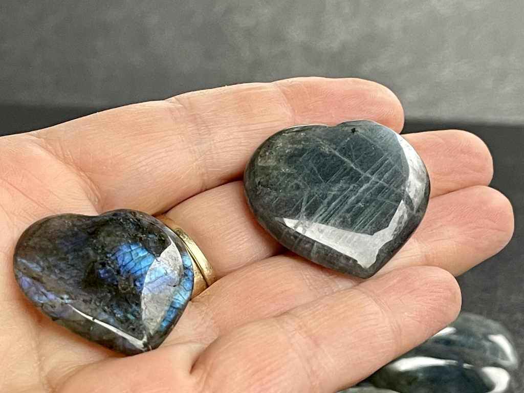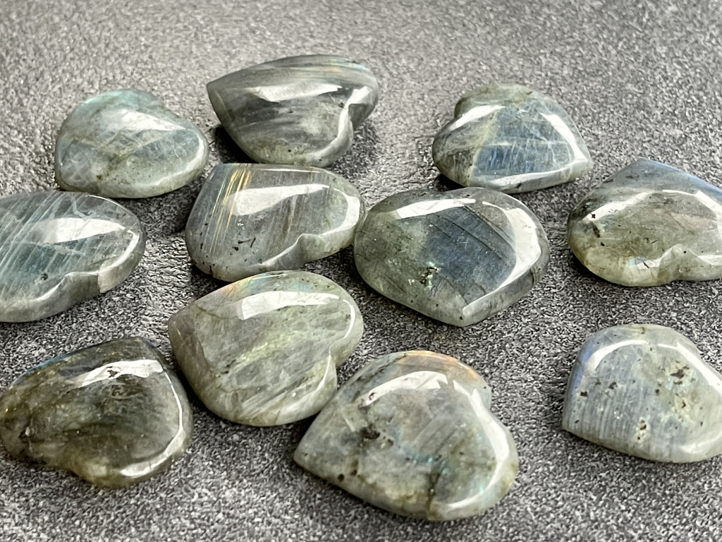 Srdce z labradoritu je kamenem intuice, meditace a aury. Eliminuje emocionální únavu z každodenního života. Navrací do života radost a spontánnost