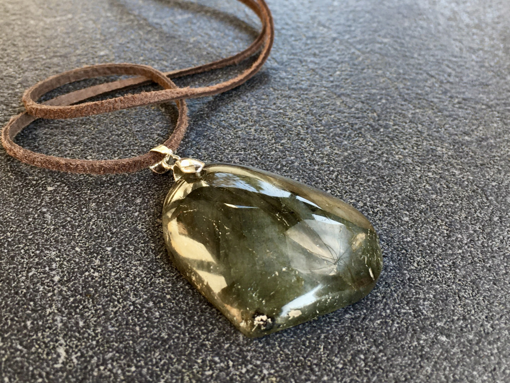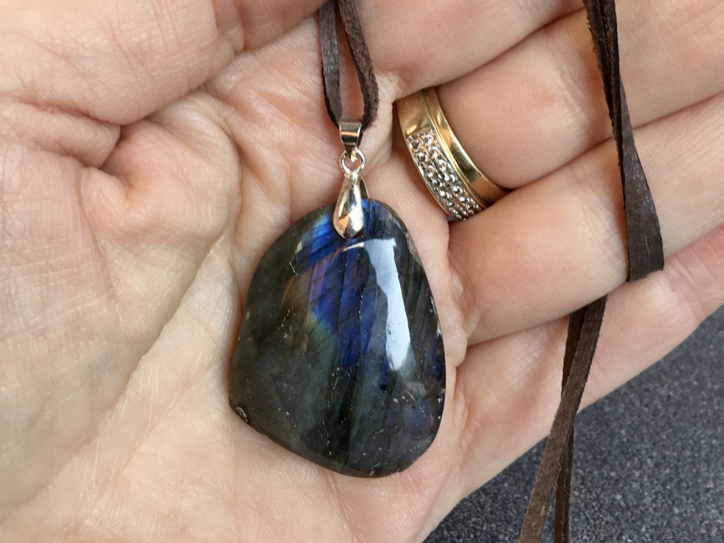 Přívěsek na krk z labradoritu je kamenem intuice, meditace a aury. Pomáhá vyvolat vzpomínky, které dávno zapadly kamsi hluboko do paměti.