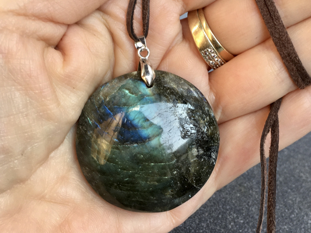 Přívěsek na krk z labradoritu je kamenem intuice, meditace a aury. Pomáhá vyvolat vzpomínky, které dávno zapadly kamsi hluboko do paměti.