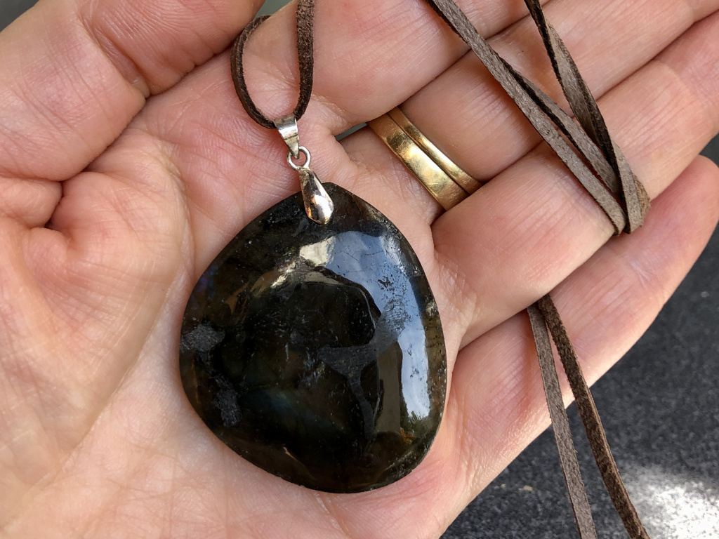Přívěsek na krk z labradoritu je kamenem intuice, meditace a aury. Pomáhá vyvolat vzpomínky, které dávno zapadly kamsi hluboko do paměti.