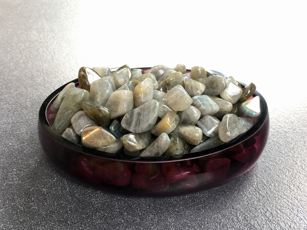 Malý tromlovaný kámen labradoritu je vhodný jako dekorace nebo jako amulet do kapsy, kde kde pomáhá vyvolat vzpomínky, které dávno zapadly kamsi hluboko do paměti.