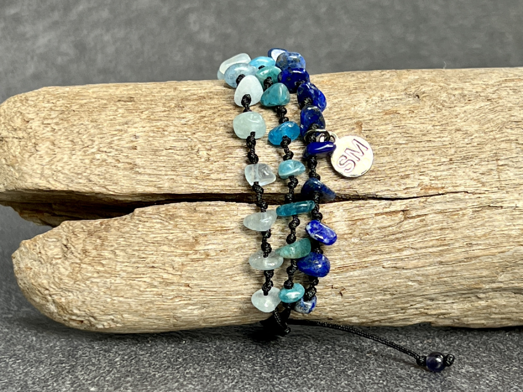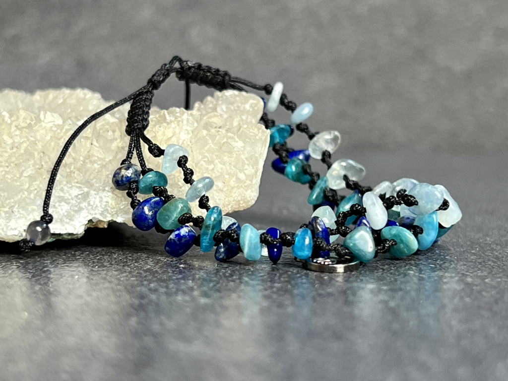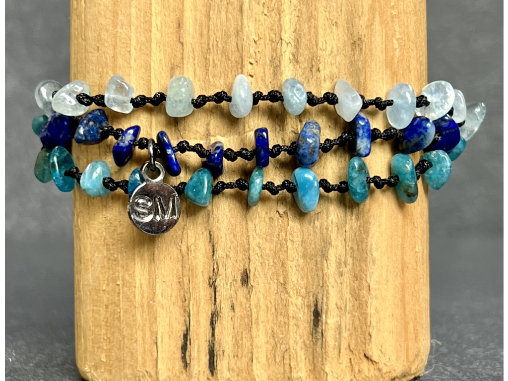 SEBEVĚDOMÍ / SPOKOJENOST / INTELEKT Lapis lazuli, apatit, akvamarín náramek cord - trojitý