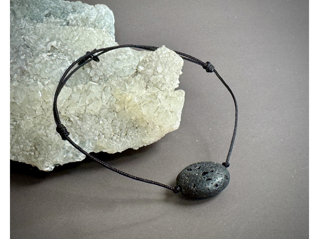 Silný, přesto jemný náramek s jedinýmlávoým kamenem na černé šňůrce. Přírodní vulkanický kámen, který vás uzemní a dodá vnitřní sílu v každé situaci.