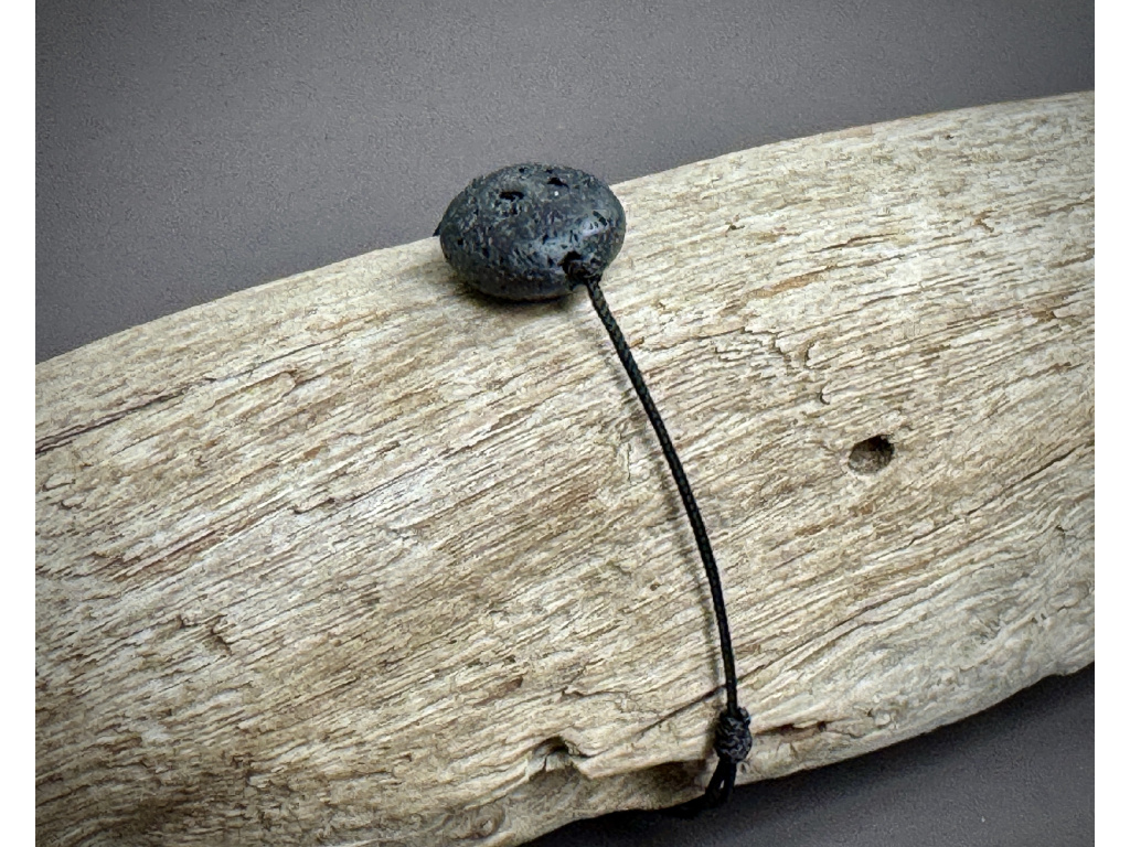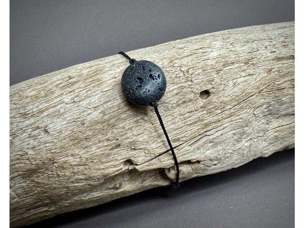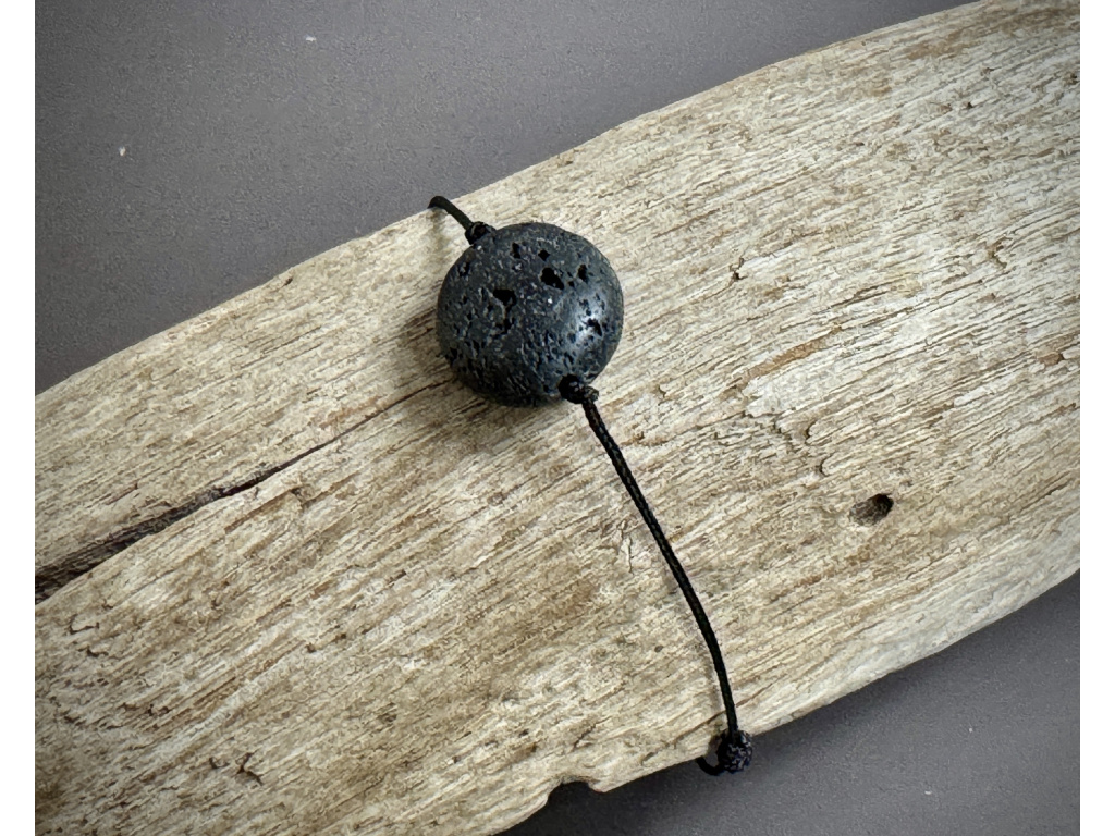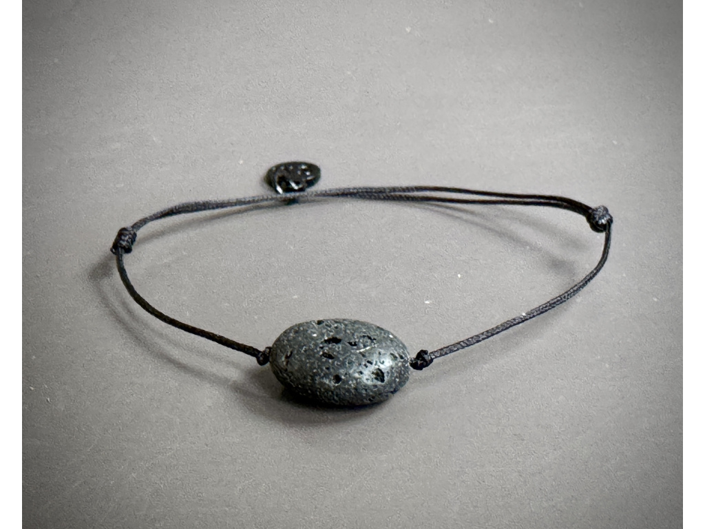 Minimalistický náramek s jedním přírodním lávovým kamenem na černé šňůrce s posuvným zapínáním. Jednoduchý, silný, nadčasový.
