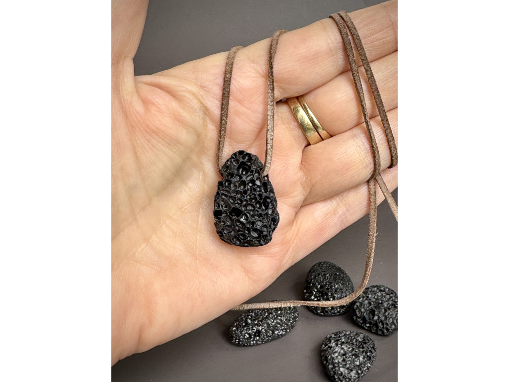 Jednoduchý, ale silně působící přívěsek z lávy v přírodní černé barvě symbolizuje sílu země, odvahu a ochranu. Lávový kámen vznikl z chladnoucí magmy, a proto v sobě nese energii ohně i země – propojuje fyzickou i duševní sílu a pomáhá uvolnit vše staré, co nám už neslouží.