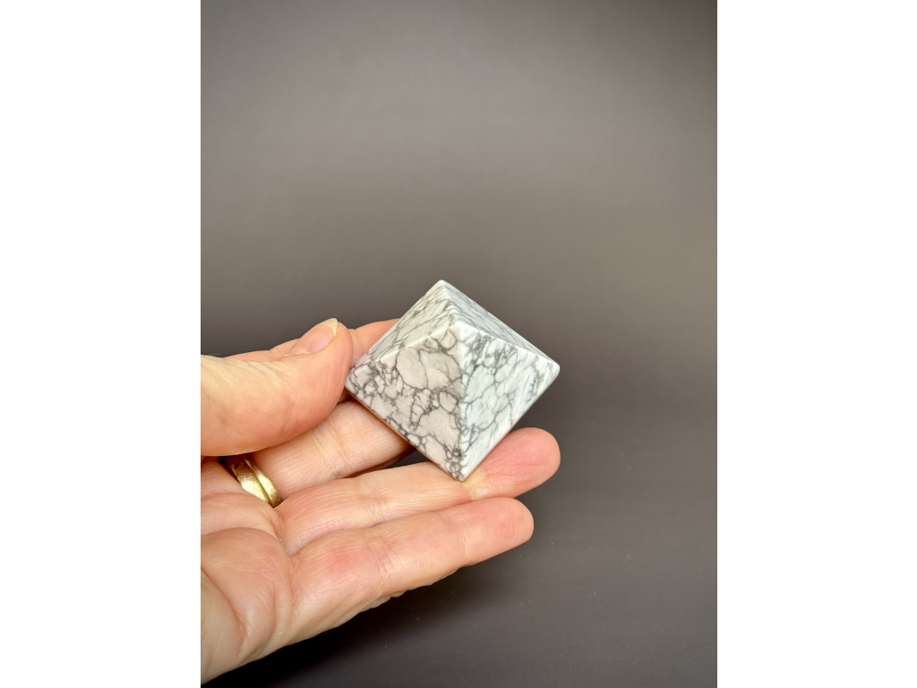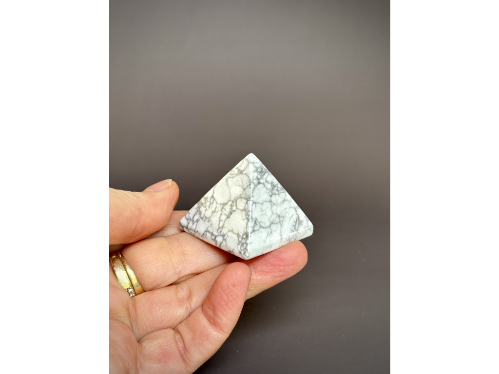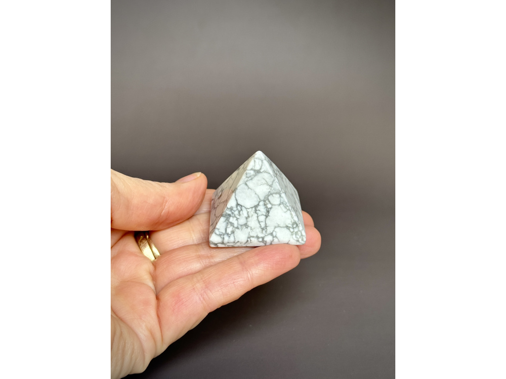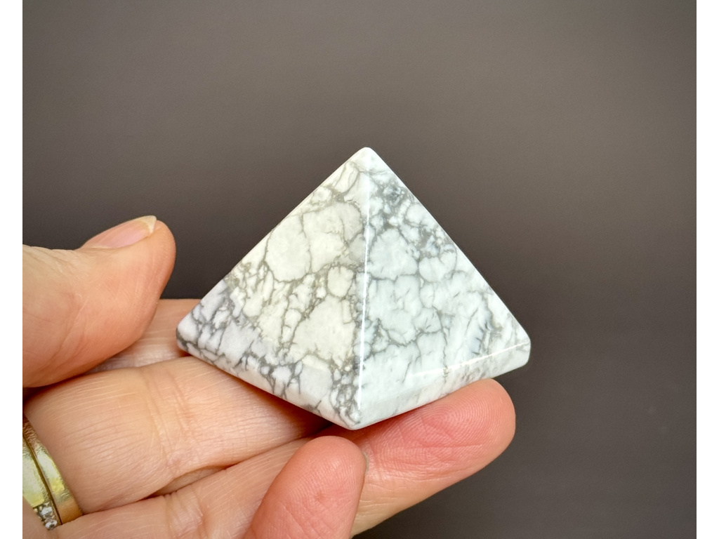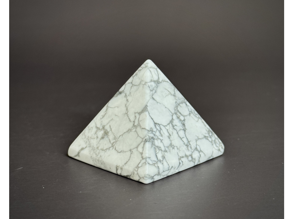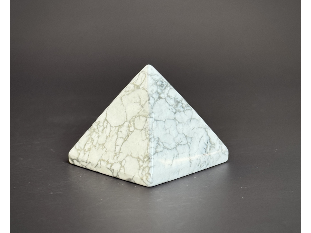 - Přírodní magnezit, pečlivě broušený a leštěný do přesné pyramidy.