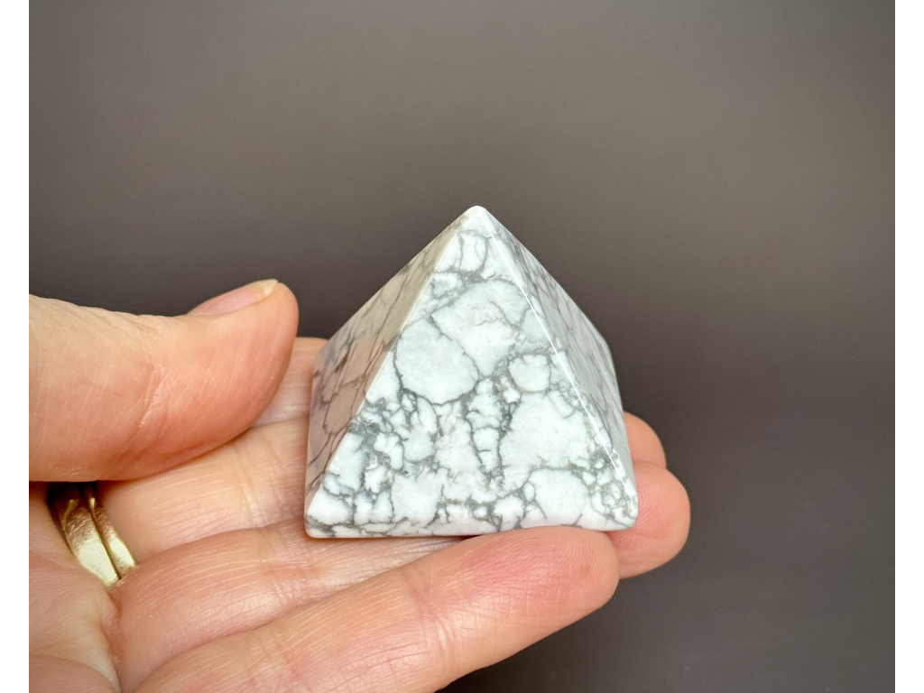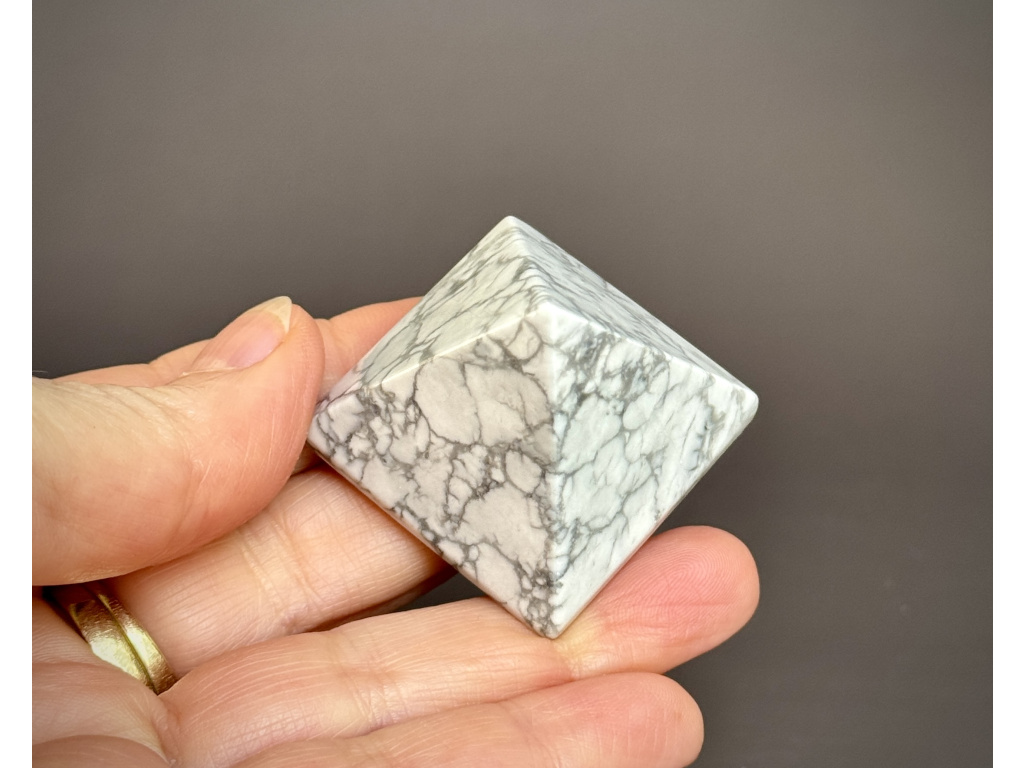 Elegantní pyramida z přírodního magnezitu v jemné bílo‑šedé kresbě připomínající mramor. Hladký, lesklý povrch a klidná estetika z ní dělají nenápadný, ale mocný doplněk pro pracovní stůl, ložnici či meditační koutek.