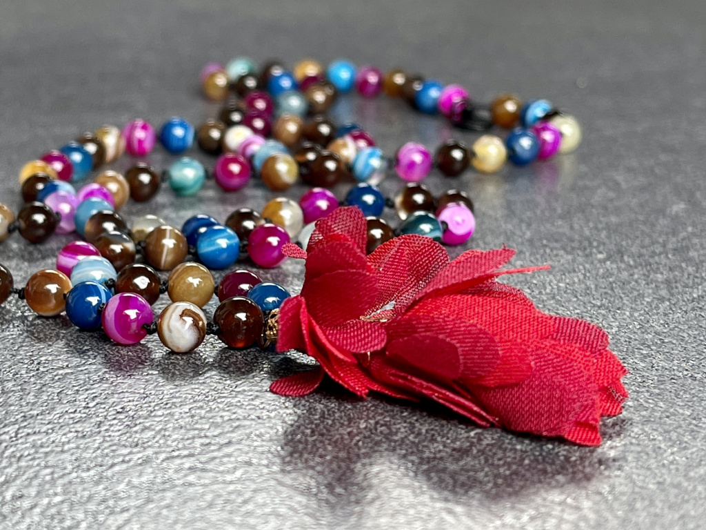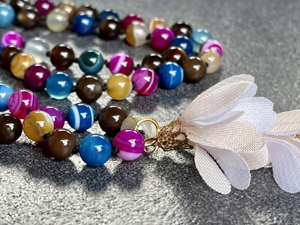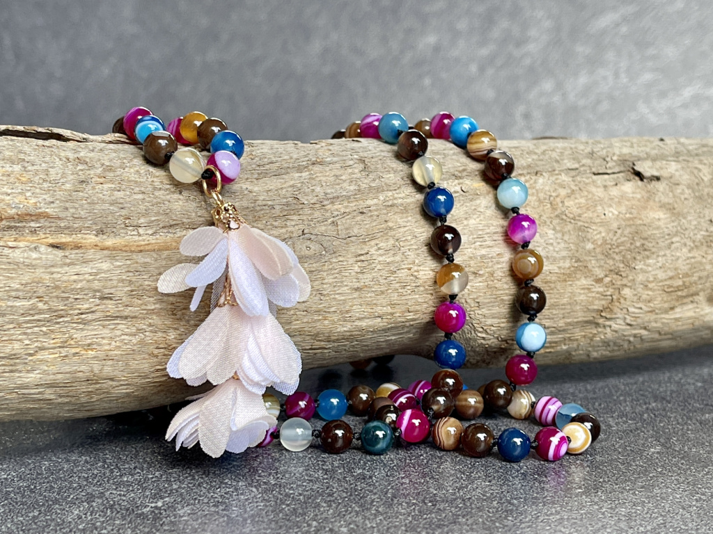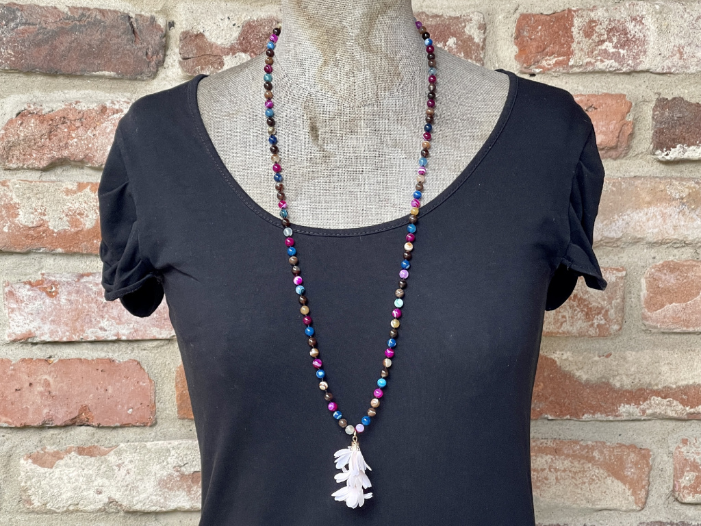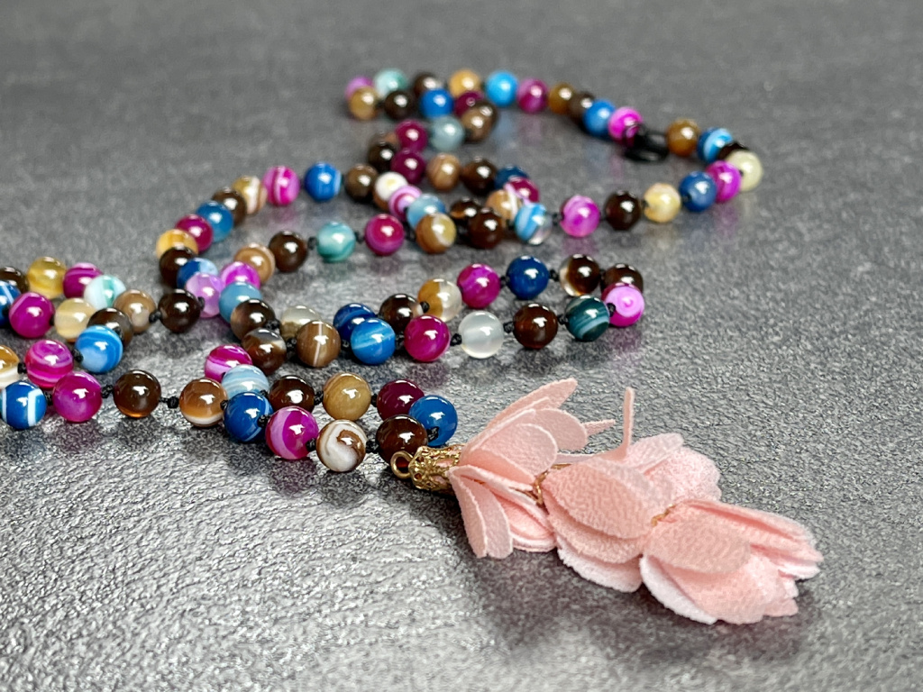 Nádherný náhrdelník sestavený z různobarevných kuliček achátu, který pomáhá ženám dodat vnitřní sílu a sebepoznání. Náhrdelníky Mála jsou řetězce kuliček, které jsou nejčastěji v počtu 108, ale vždy dělitelné 9, aby bylo zachováno duchovno, které je spojeno s budhismem.