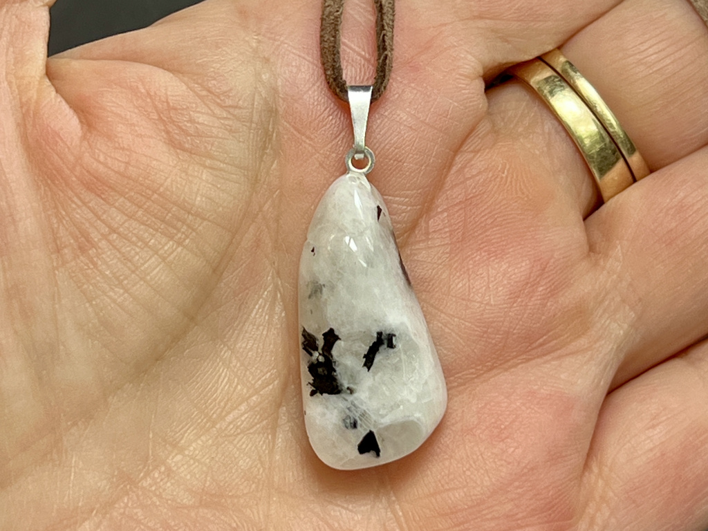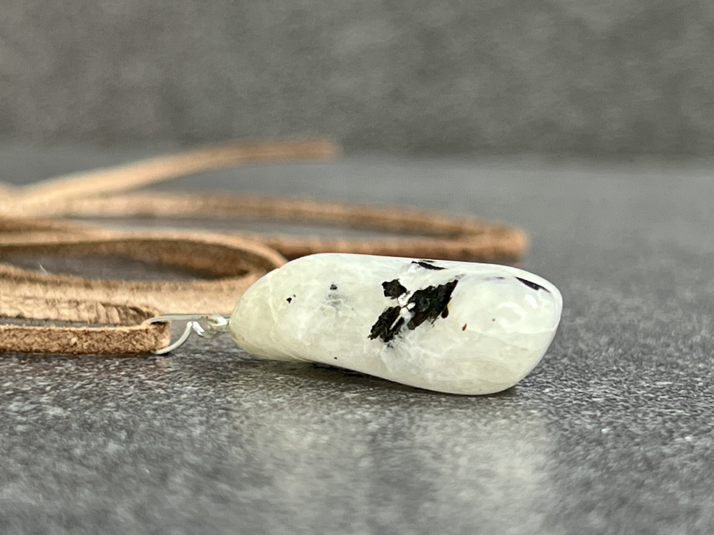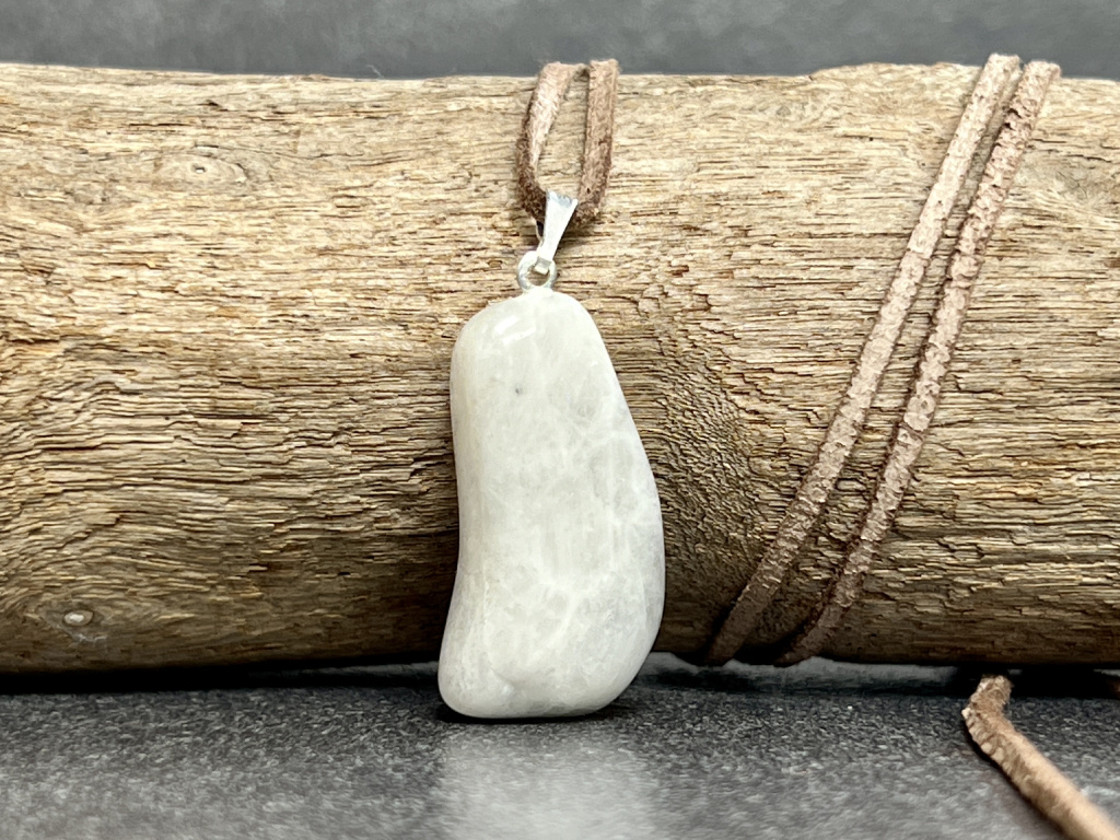 Přívěsek z magického bílého měsíčního kamene je symbolem mateřství a nových začátků.
