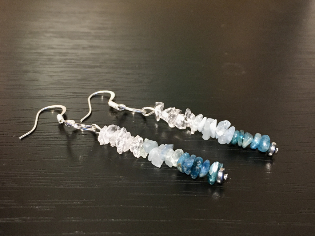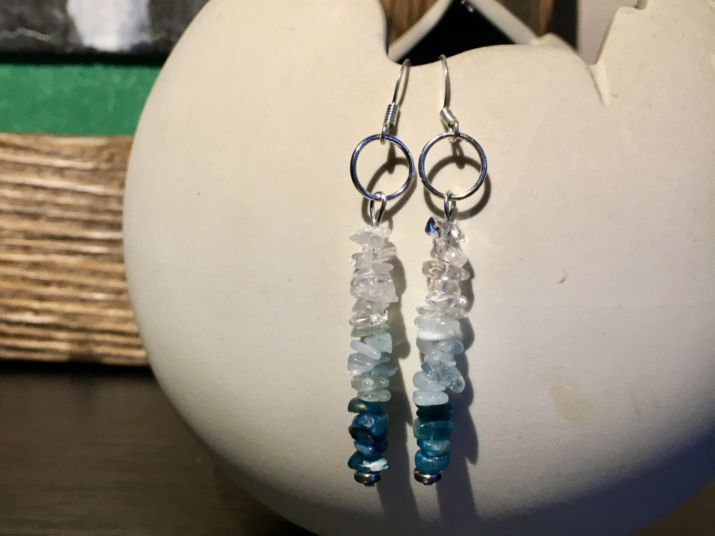 Mix kamenů náušnice - sekané (apatit, akvamarín, křišťál)