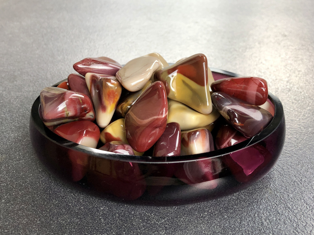 Tromlovaný kámen v krásných zemitých barvách podporuje tvořivost a napomáhá dosáhnout uspokojení.