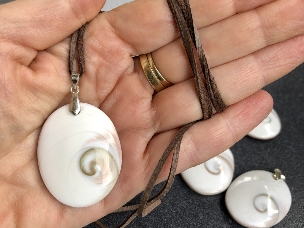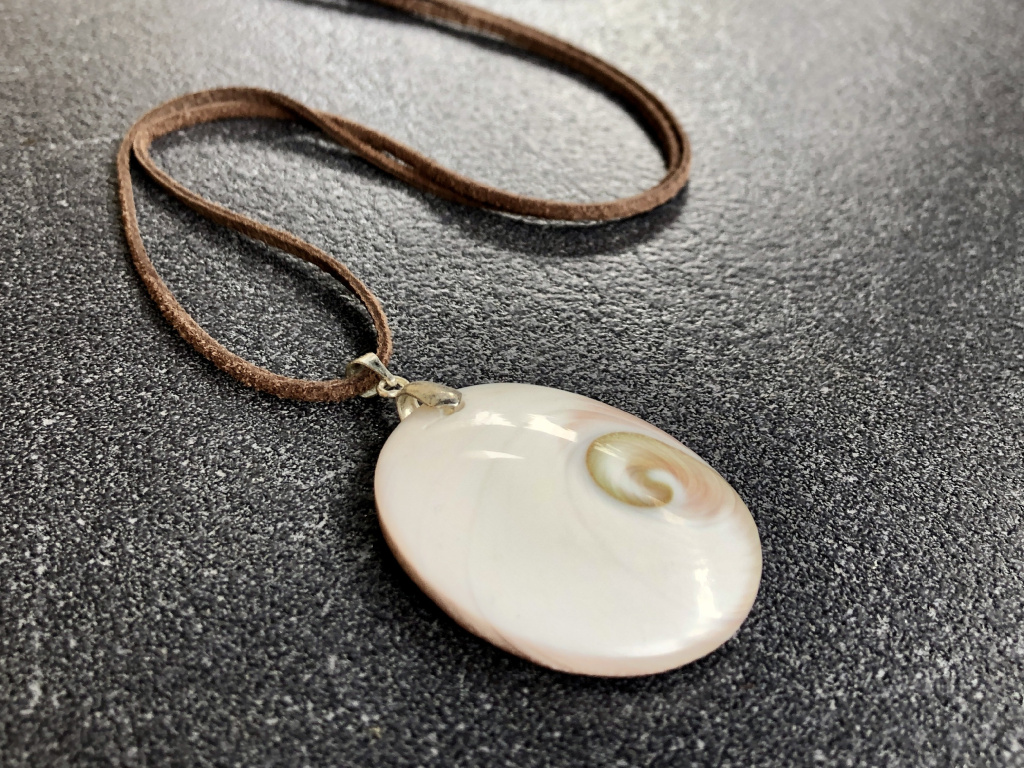 Krásný přívěsek z přírodní mořské mušle z Brazílie je symbolem nového zrození, mateřství a silně ochraňuje před negativní energií ve všech směrech.