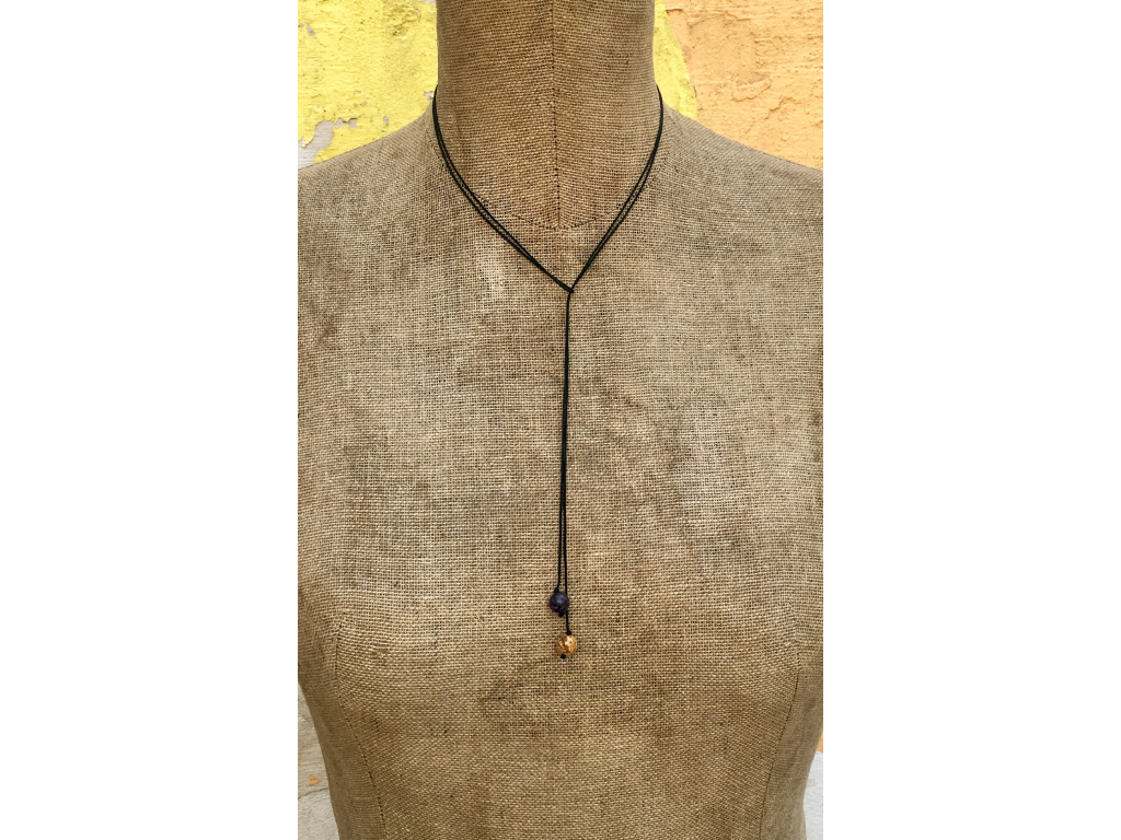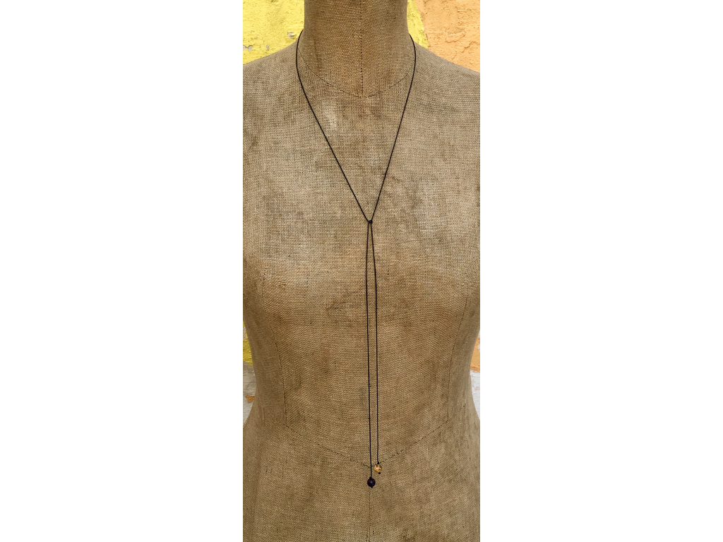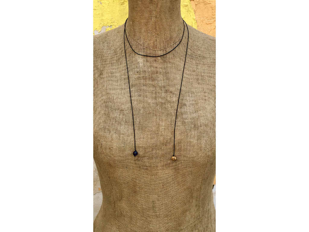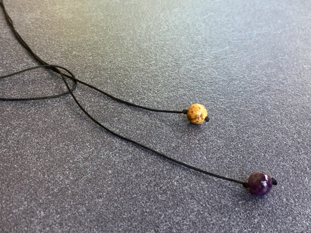 - Minimalistický design: tenká černá šňůrka se dvěma kameny na koncích