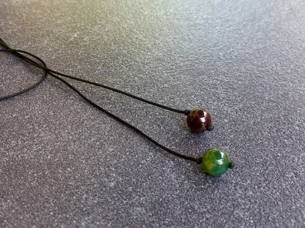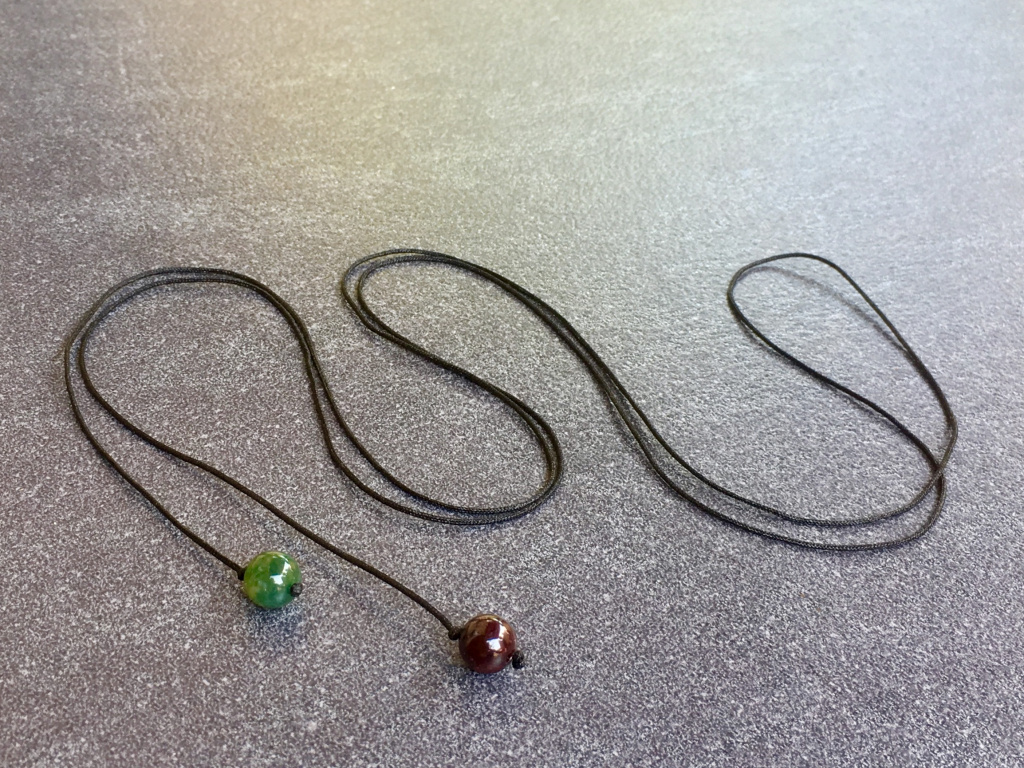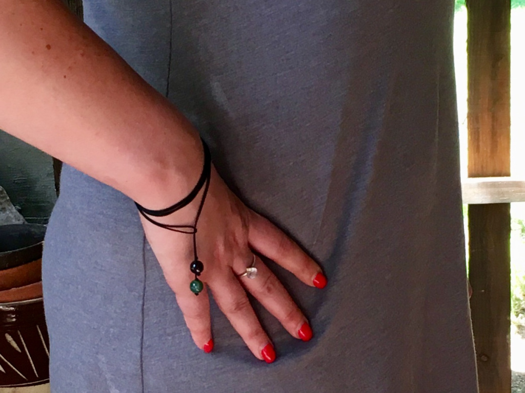- Jemná, pevná černá šňůra s ukončením přírodními minerály.
