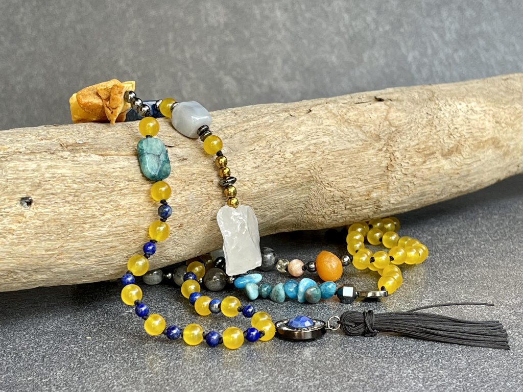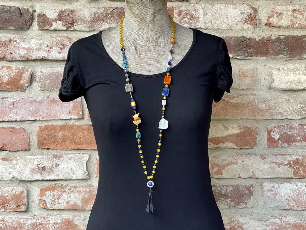 Originální šperk a magická moc kamenů, která na vás bude pozitivně působit. Přitáhněte štěstí na svou stranu za pomoci vybraných minerálů a vneste tak do svého života harmonii klid a mír. Podporuje kouzlo osobnosti, empatii, neúnavnost a usnadňuje mezilidskou komunikaci. Tento náhrdelník najdete na světě jen v jediném provedení, stane se tak luxusním doplňkem a silným pomocníkem.