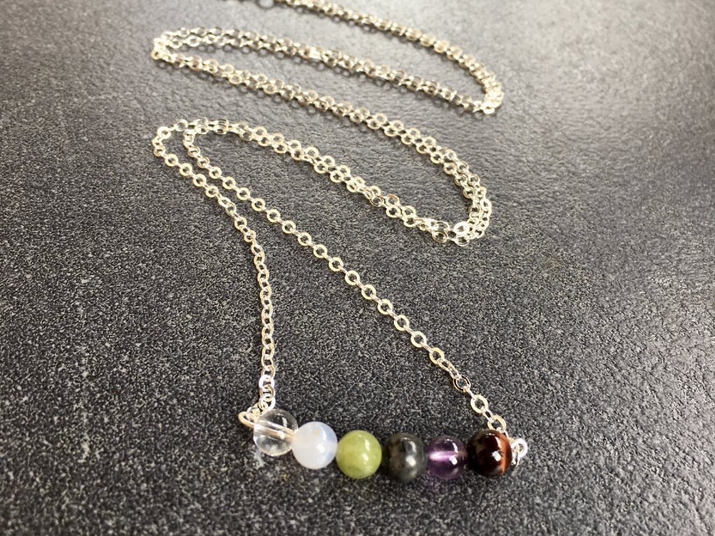 Elegantní náhrdelník, z mixu kamenů, svého majitele silně ochraňuje a dodává mu životní energii.