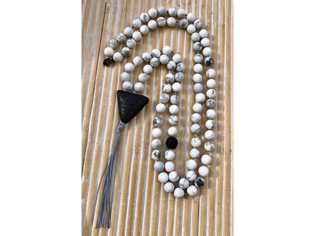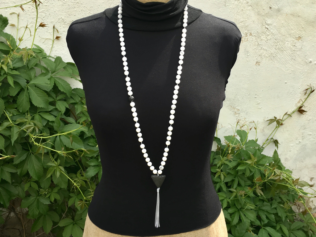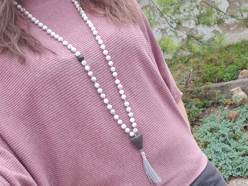 Náhrdelník MÁLA magnezit mat, láva - 88 cm