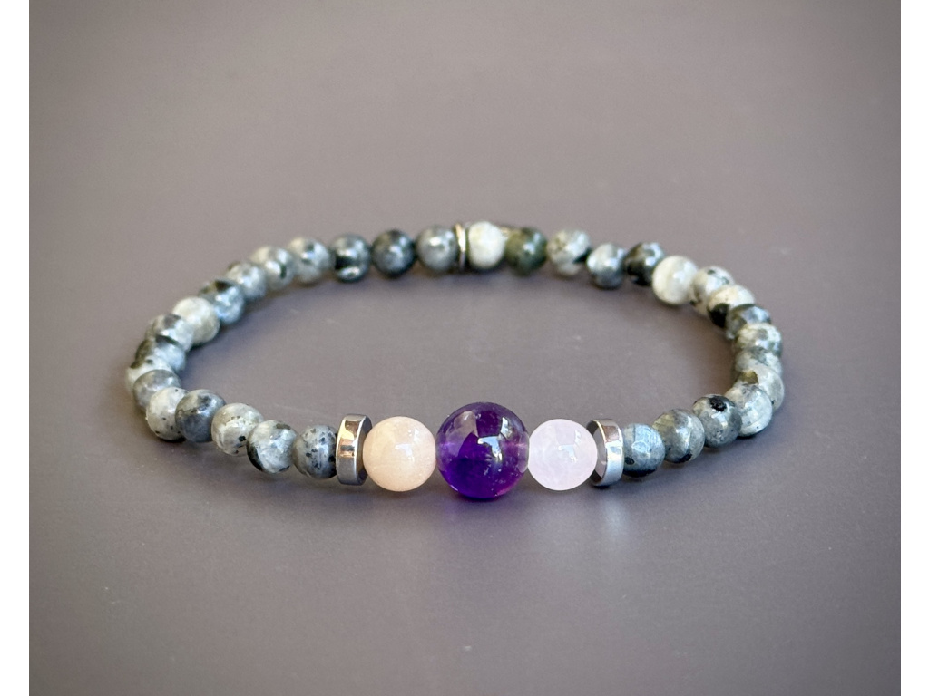 - Labradorit – rozjasňuje mysl, posiluje vnitřní světlo, podporuje kreativitu a chrání před negativními energiemi okolí.