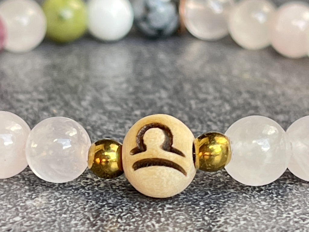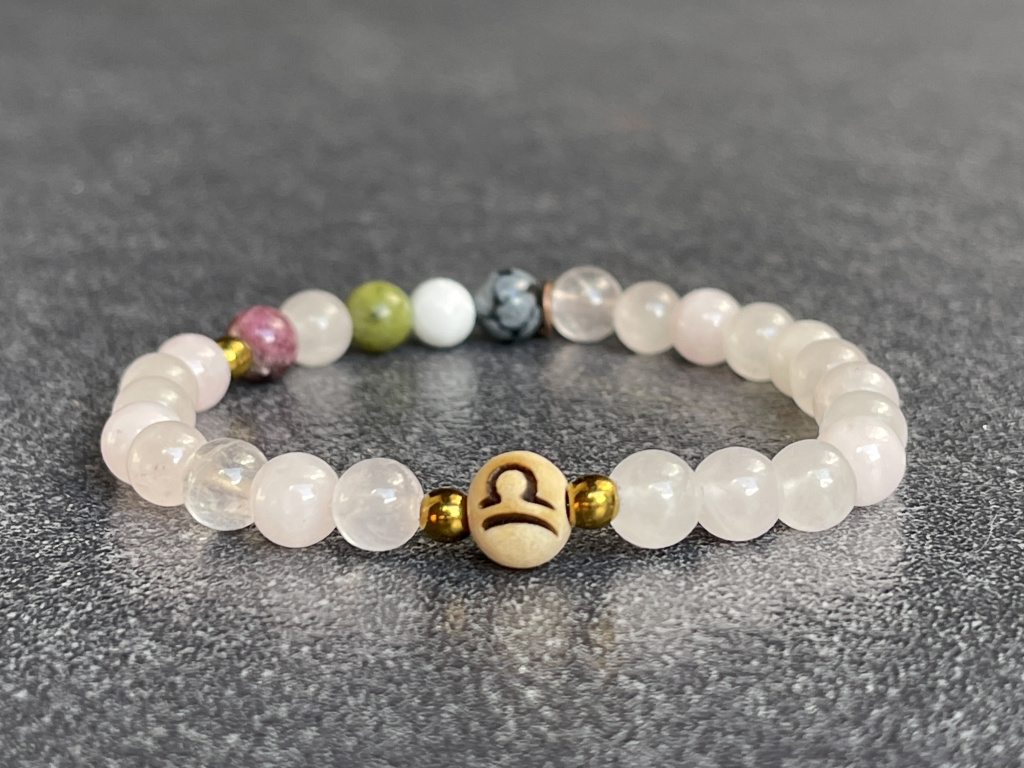 Elegantní náramek z přírodních minerálů, vyladěný pro všechny jemné a tvořivé Váhy. Pomáhá zklidnit pasivitu a nerozhodnost a současně posiluje silné stránky Vah – schopnost vidět věci z více úhlů, diplomacii a spolehlivost.