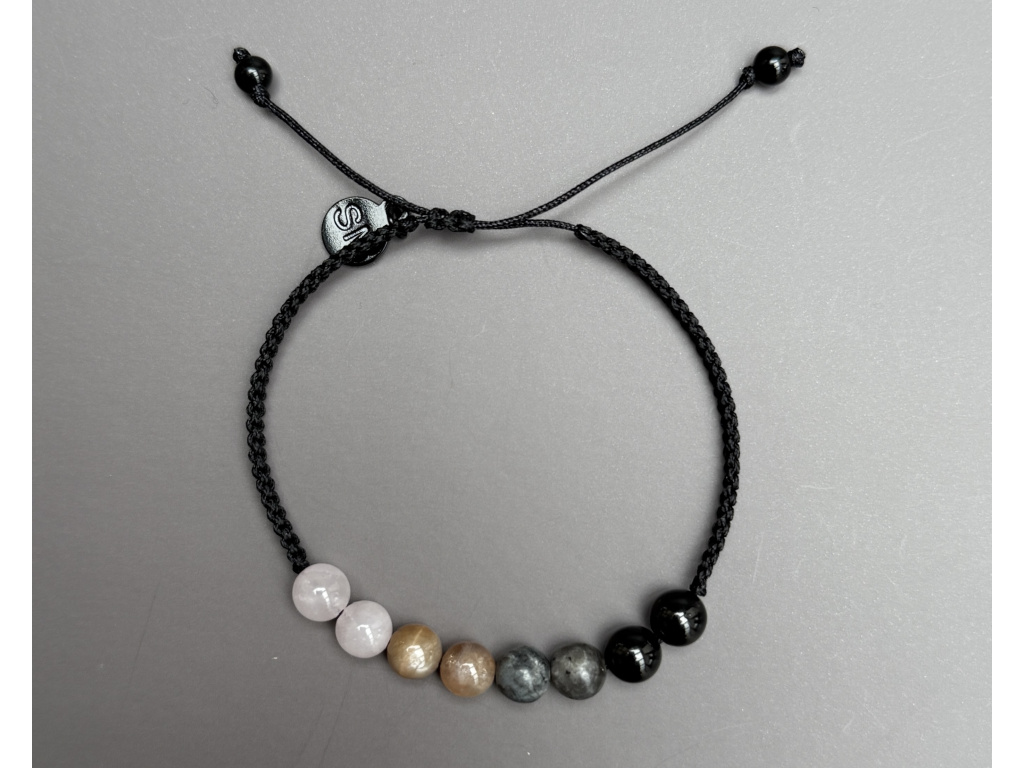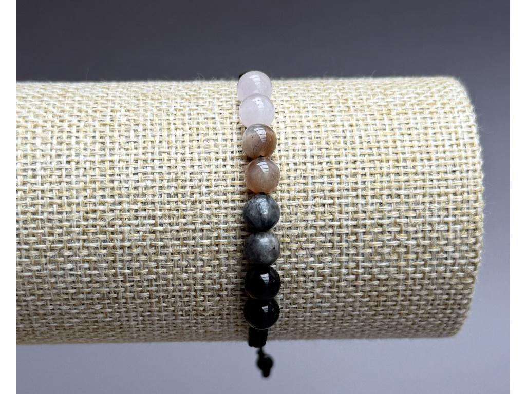 Náramek JSEM JINAK - "KLIDNÁ MYSL" bound - turmalín, labradorit, měsíční kámen, růženín