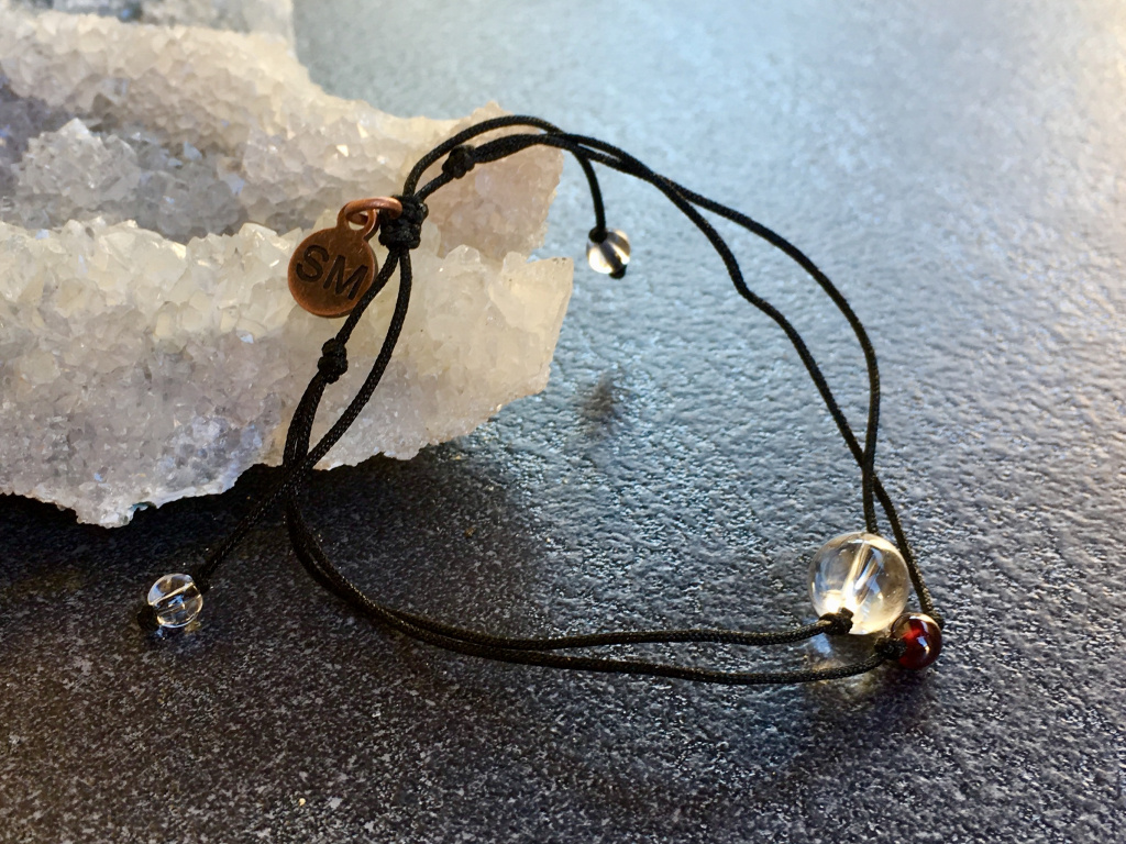 ROZMĚRY: křišťál - kulička 8 mm, granát - kulička 4 mm