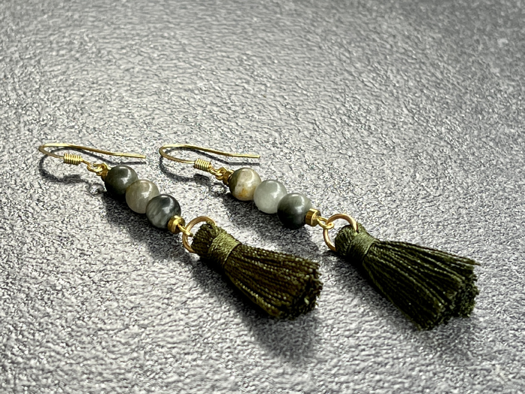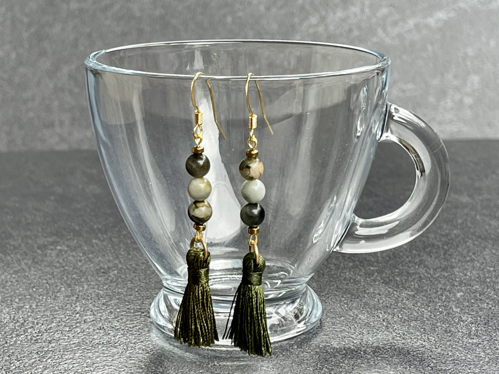 Náušnice se střapcem - jaspis orlí - 6 mm