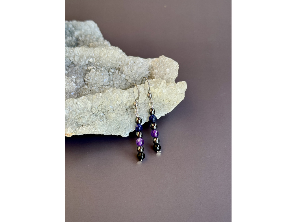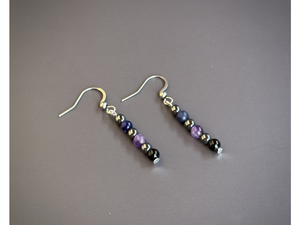 Náušnice "JSEM CHOLERIK" - ametyst, hematit, turmalín, sodalit