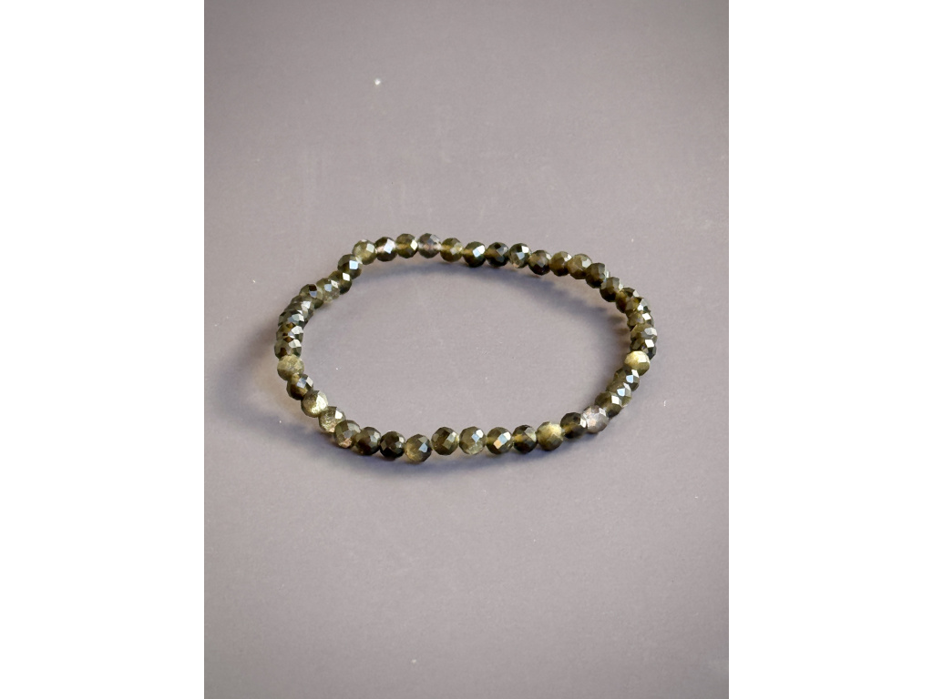 - Fasetový brus zvýrazňuje zlatavé odlesky minerálu a dodává celému náramku elegantní a jedinečný vzhled.