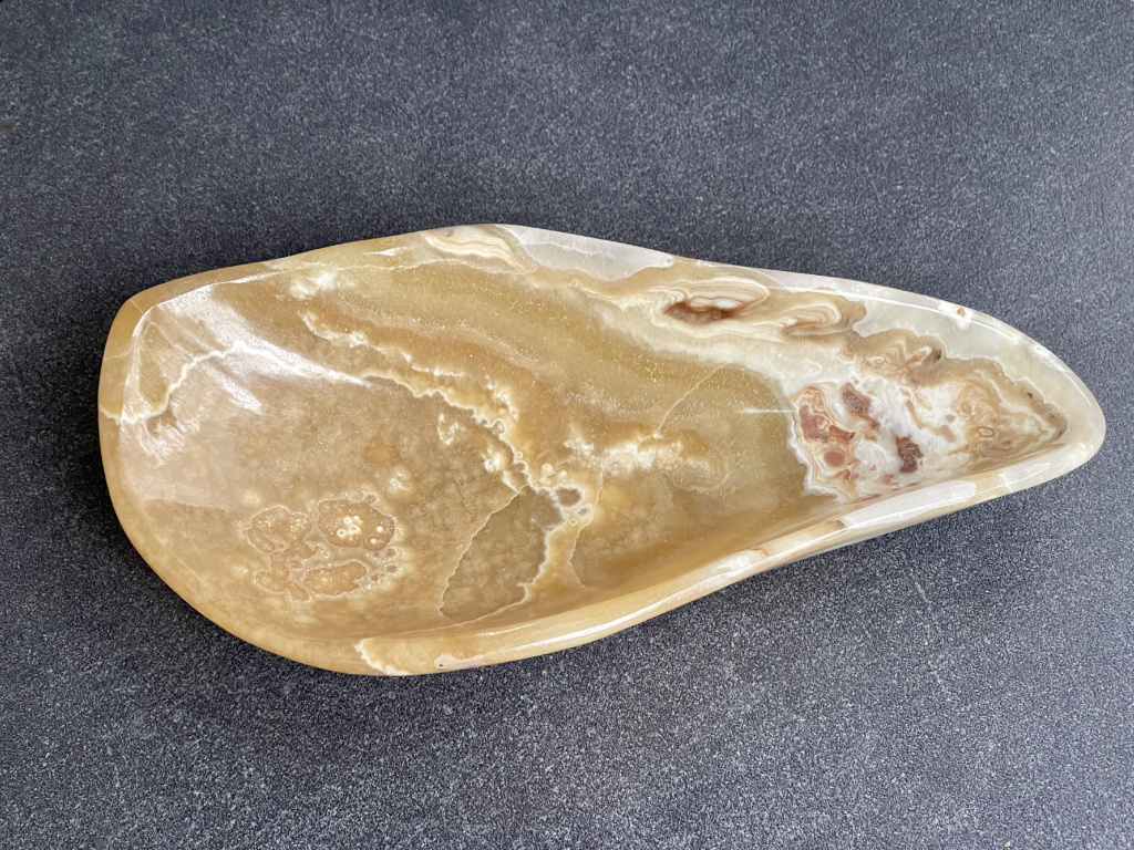 Každý kus je ručně vybroušený a leštěný, aby zdůraznil jedinečnou texturu a barevnost kamene, čímž se stává nejen užitečným předmětem, ale i výjimečným dílem umění.