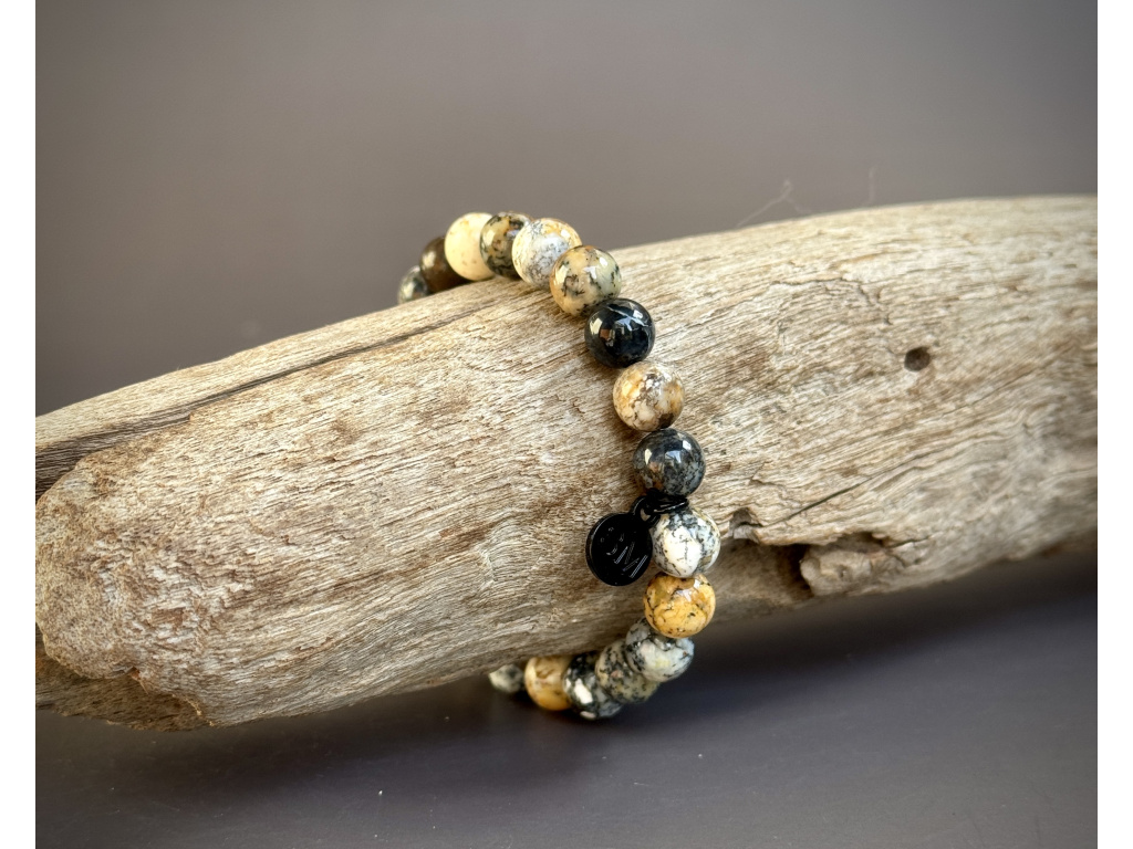 Tento náramek podporuje vnitřní stabilitu a klidné přijetí života takového, jaký je. Pomáhá zpracovávat změny s nadhledem, čistí mysl od chaosu a probouzí moudrost srdce. Každý korálek je jedinečný – nese v sobě otisk přírody, která spojuje sílu země a jemnost vody.