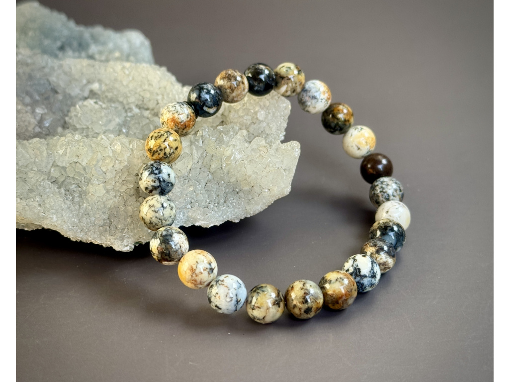 Opál dendritický náramek - kulička 8 mm