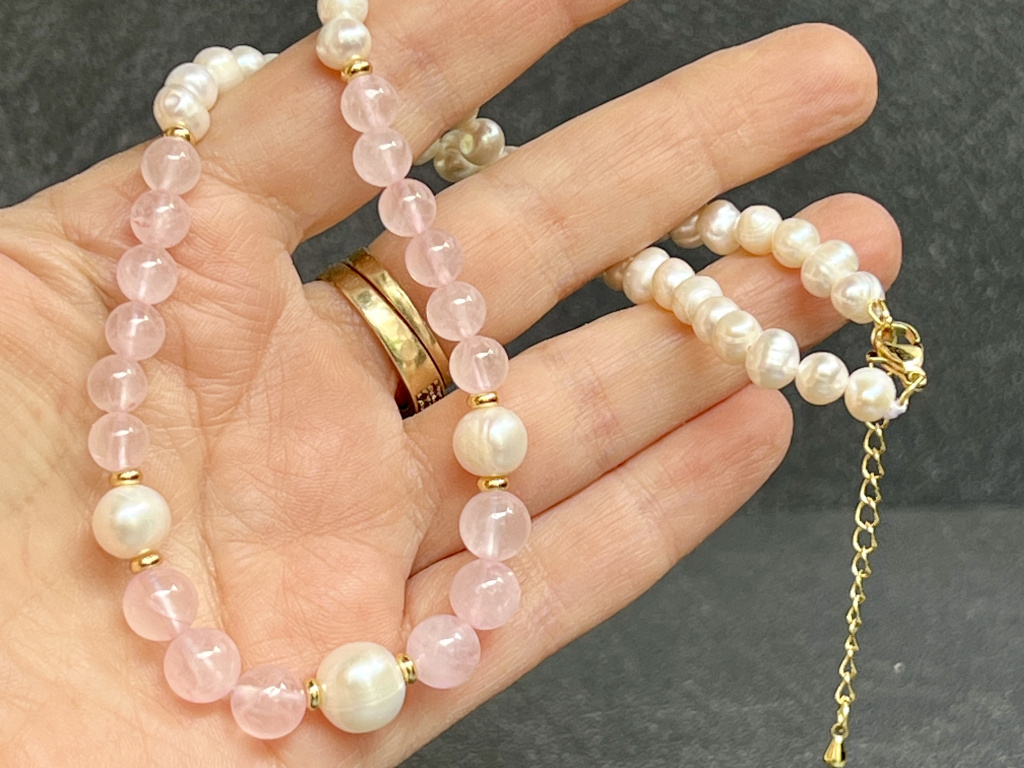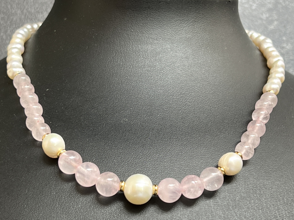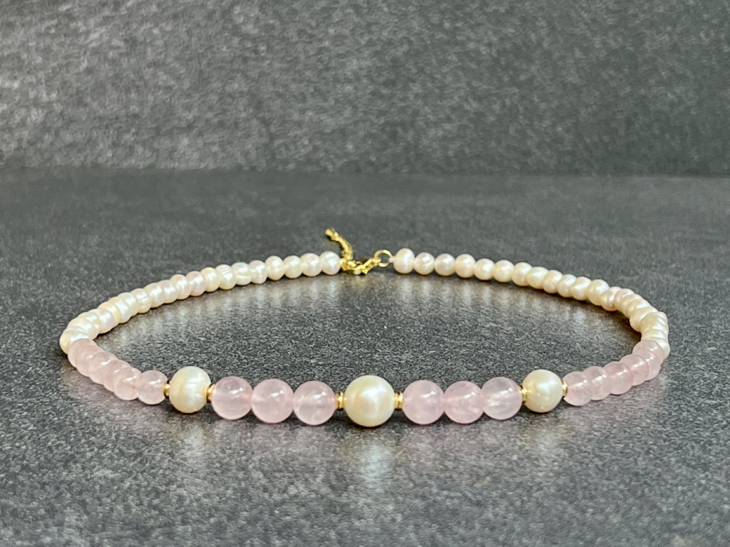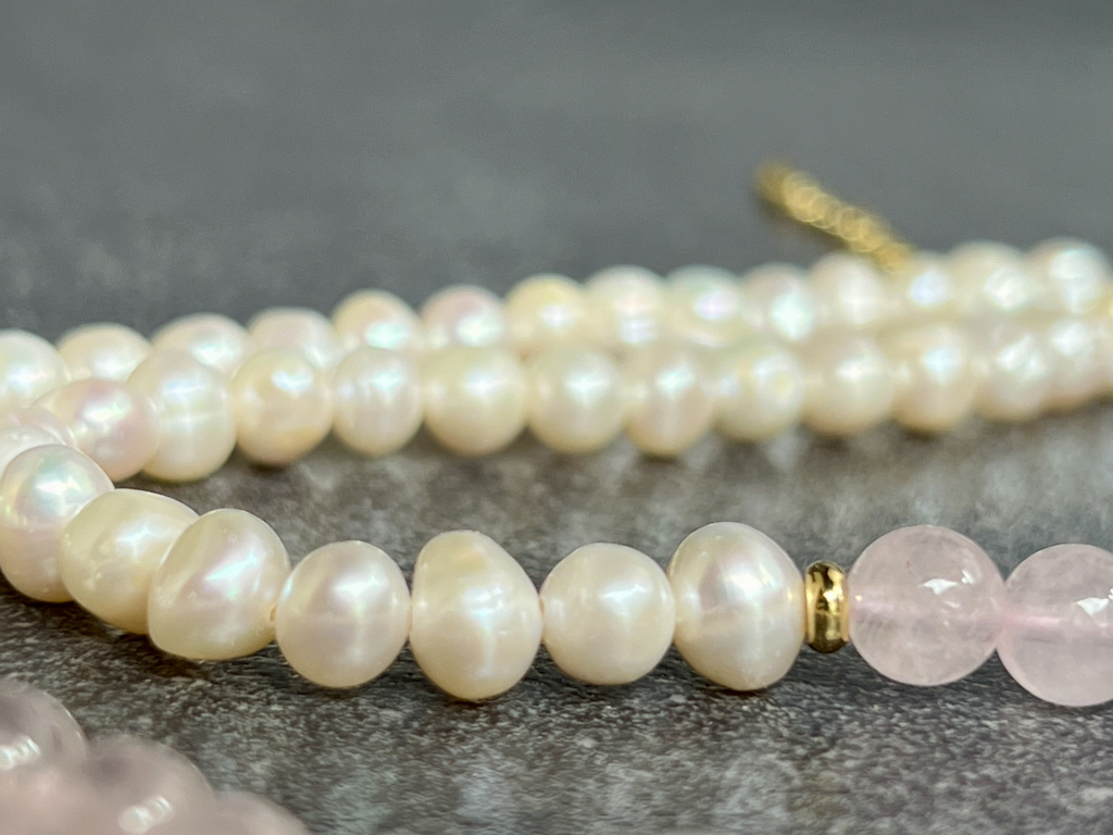 NÁHRDELNÍK Z ŘÍČNÍCH PEREL A RŮŽENÍNU